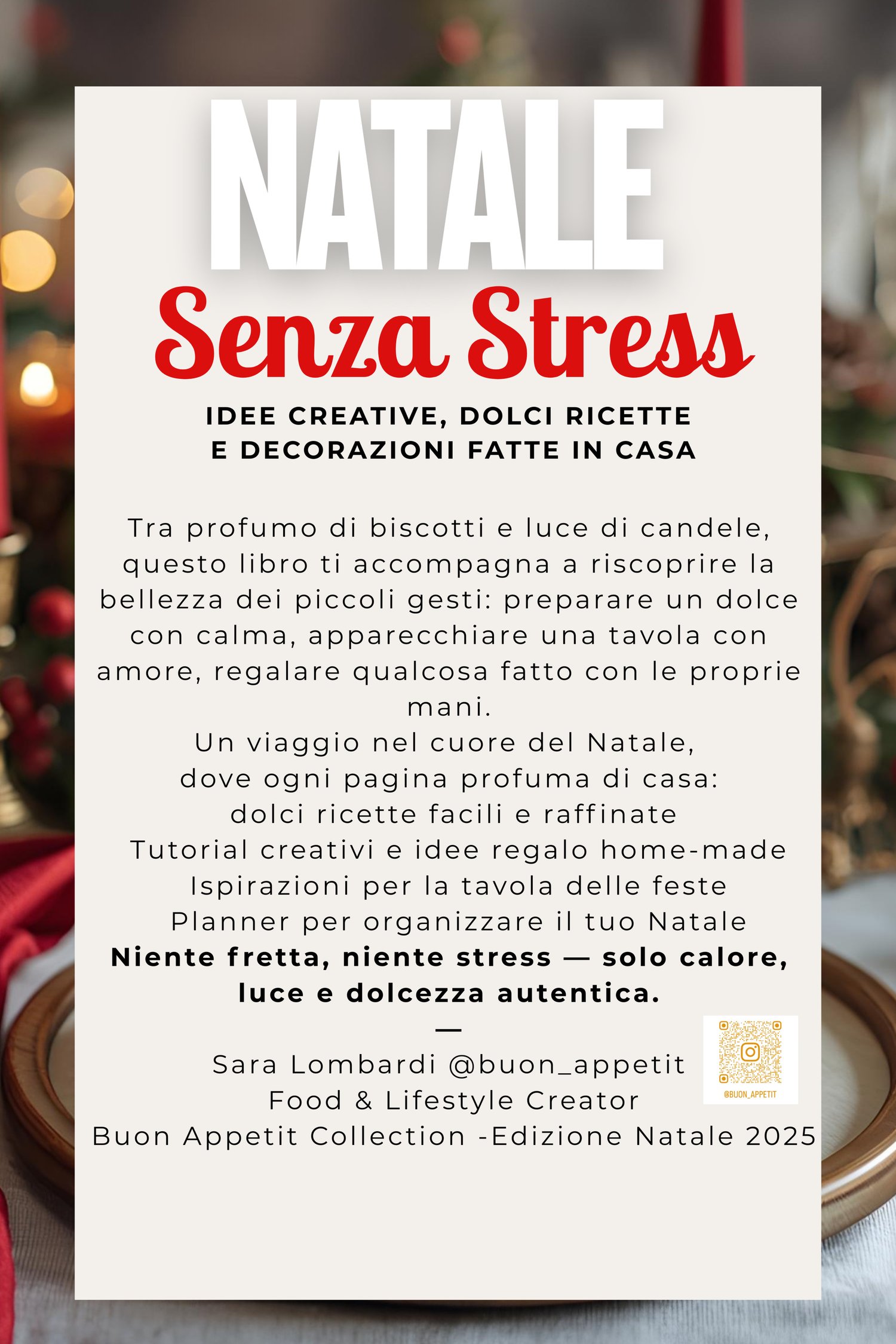 📘 “Natale senza stress –idee creative, dolci ricette e decorazioni fatte in casa ” fa parte della Buon Appetit Collection, la collana dedicata a chi crede che la felicità si trovi nelle cose semplici: un biscotto, una candela, un sorriso.