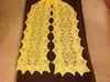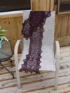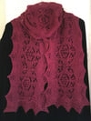 This scarf is knitted in the delicacy and simplicity of Shetland lace. The main body is charted only and the border is written only. All rows of the main body are patterned lace; there are no ‘rest’ rows.