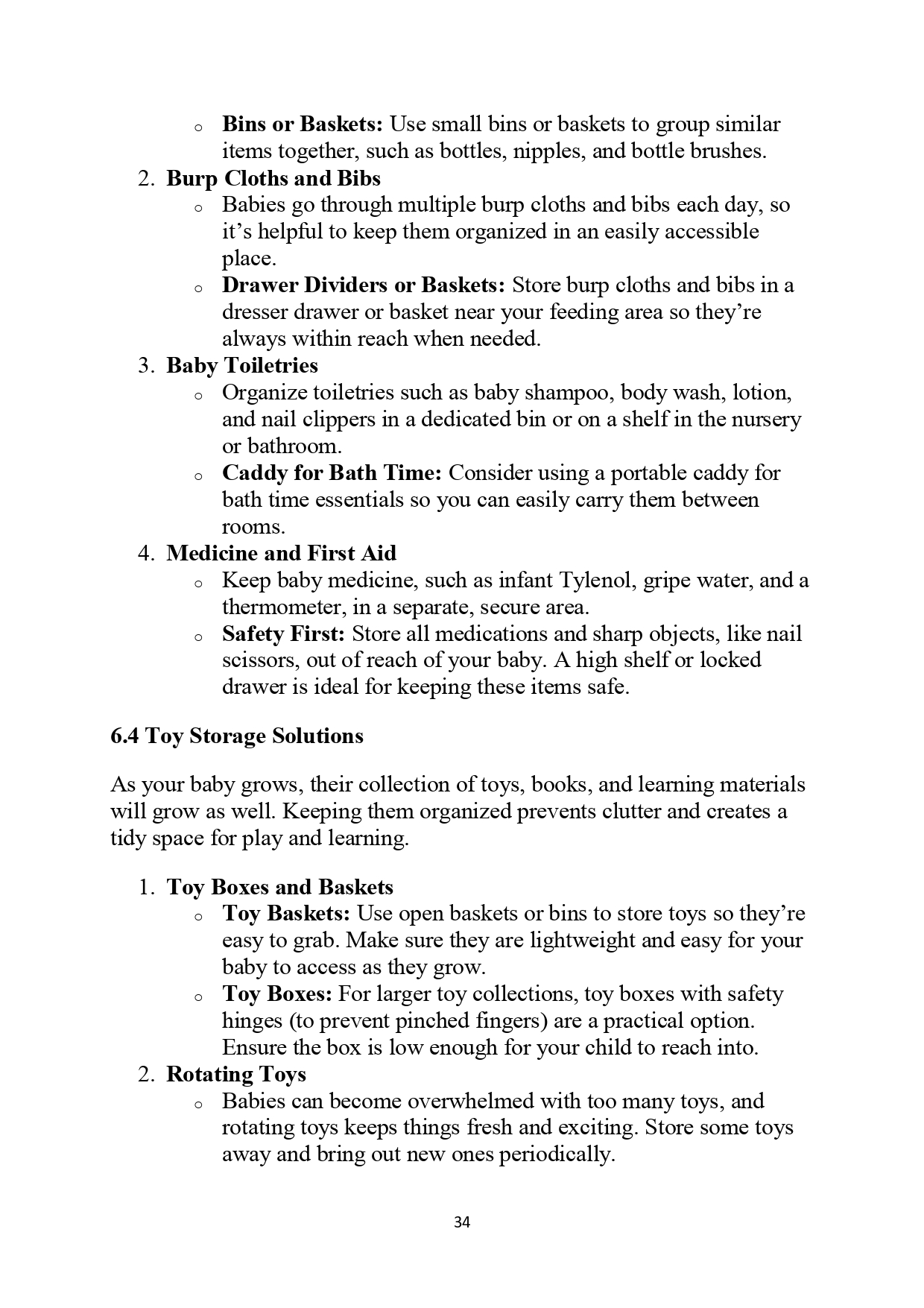 - Preparing for Baby’s Arrival: A helpful checklist of must-have items and a guide to setting up a baby care station.