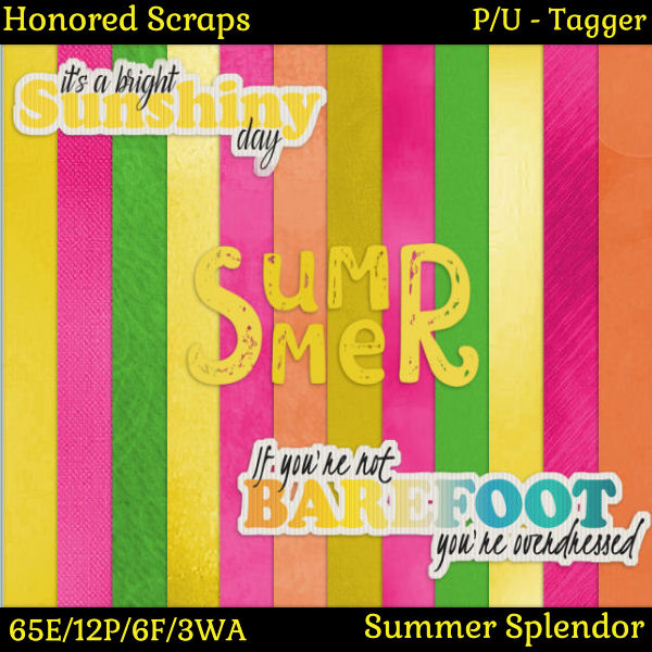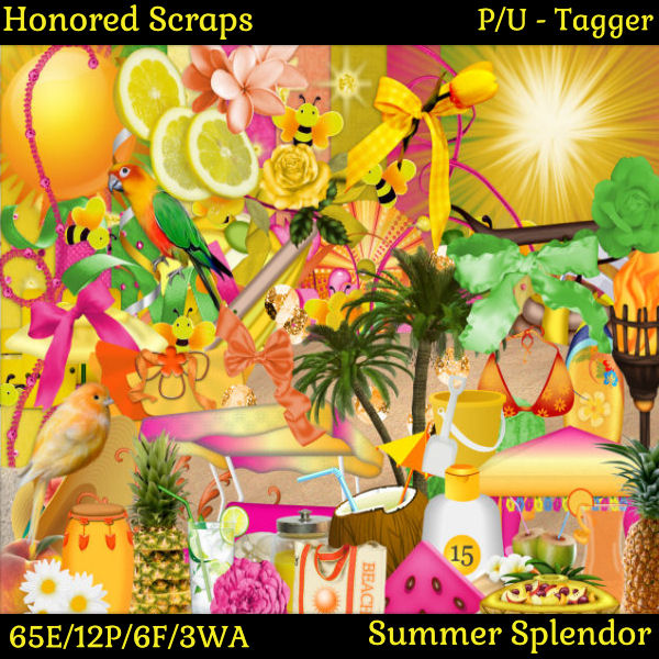 Summer Splendor is a tagger kit that consists of 65 elements, 12 papers, 6 frames and 3 word art.