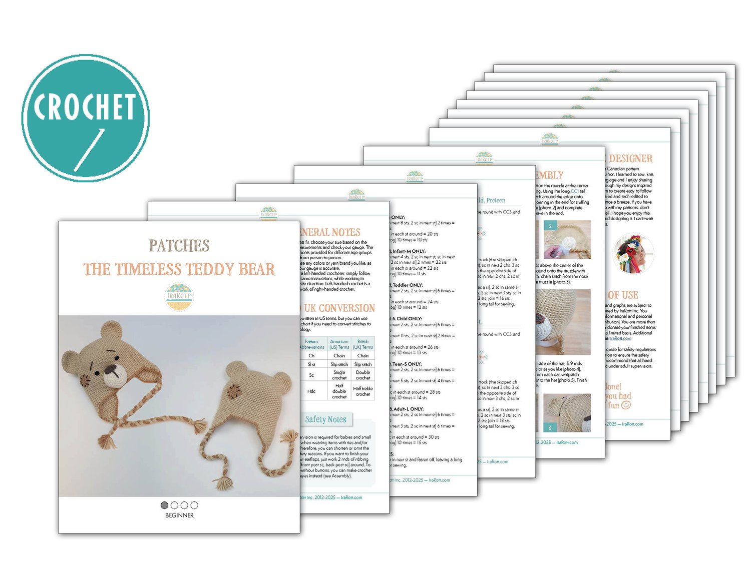 CROCHET PATTERN Patches The Timeless Teddy Bear Hat