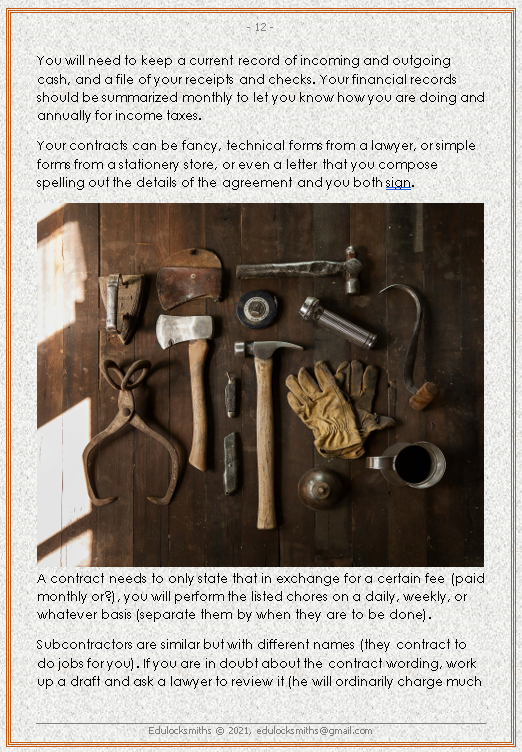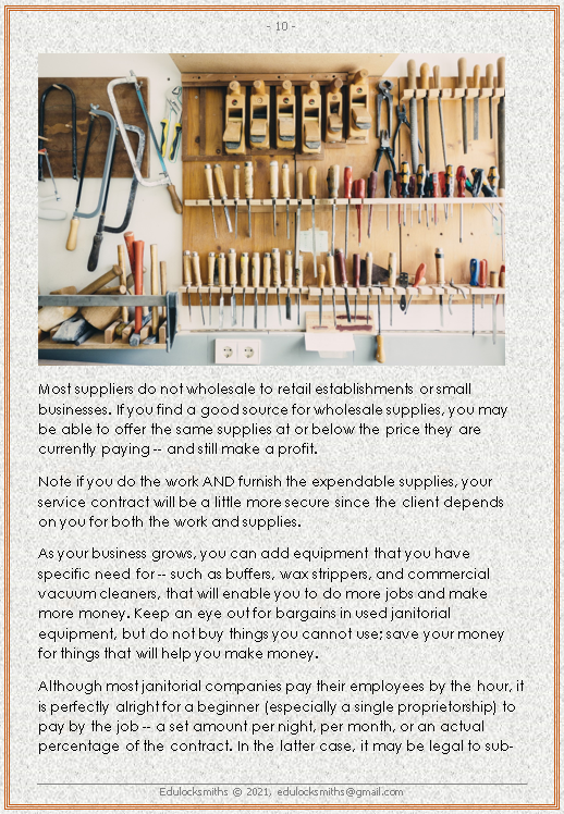 A janitorial service is a well-paying, steady business that involves mostly night work on a contract basis. You agree (contract) to perform certain scheduled actions and the client pays you monthly.