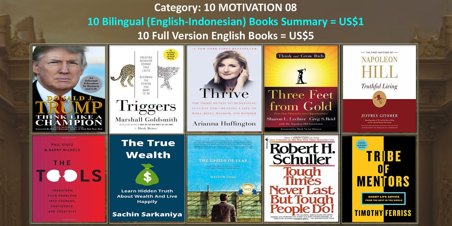 · Untuk 10 buku summary dalam 2 bahasa (English-Indonesian), hanya perlu 1 dollar saja, atau Rp.16.000,-