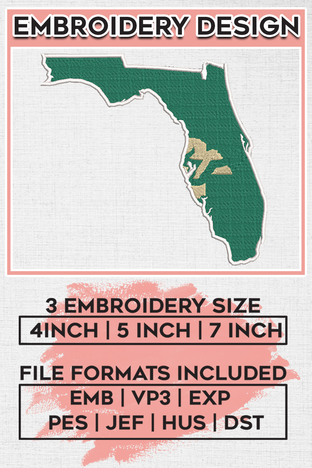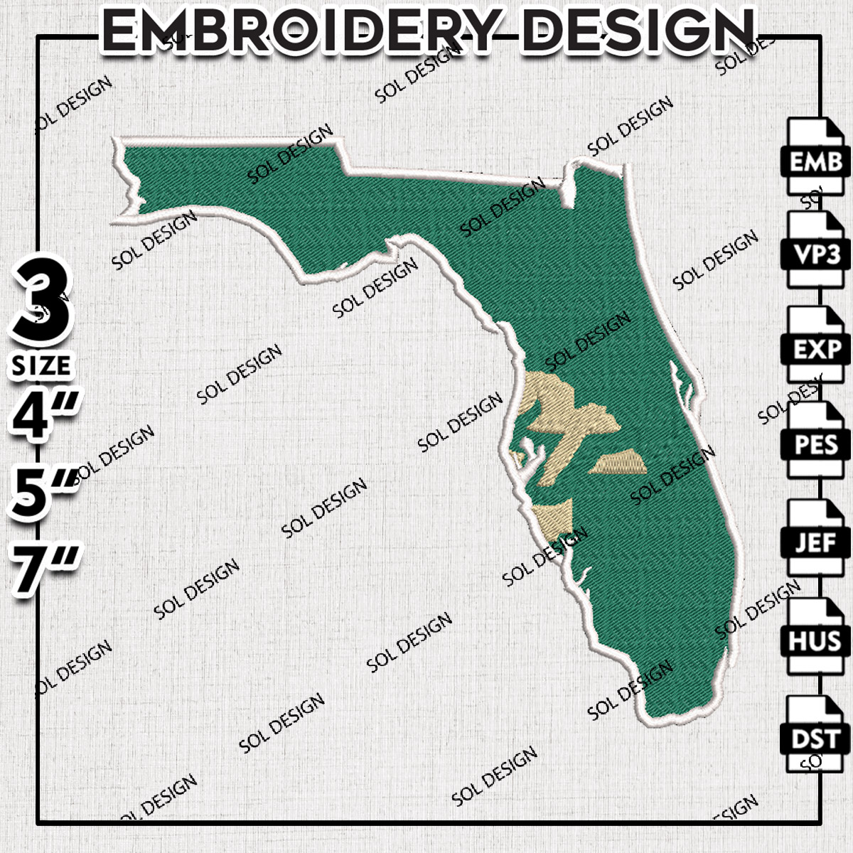NCAA South Florida Bulls College Football Team Map Logo Embroidery Designs, NCAA South Florida Bulls Machine Embroidery Files, NCAA Logo embroidery designs, Ncaa South Florida Bulls Logo, Digital Download