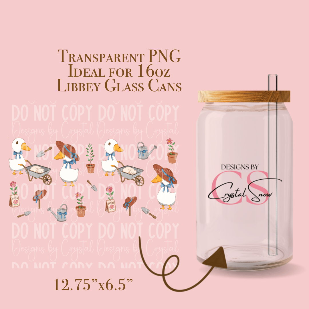 Farmhouse Country Gardening Goose Geese 16oz Libbey Glass Can Wrap