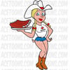 Royalty free clip art illustration of a cartoon sexy pig cowgirl with bbq ribs on a tray.