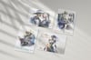 Each artwork in this series tells a story of skeletal figures caught in moments of tenderness, adventure, and contemplation. From a dapper skeleton couple locked in an eternal embrace to a solitary bony rider pedaling through a splash of vibrant hues, these images evoke both whimsy and deep emotion.