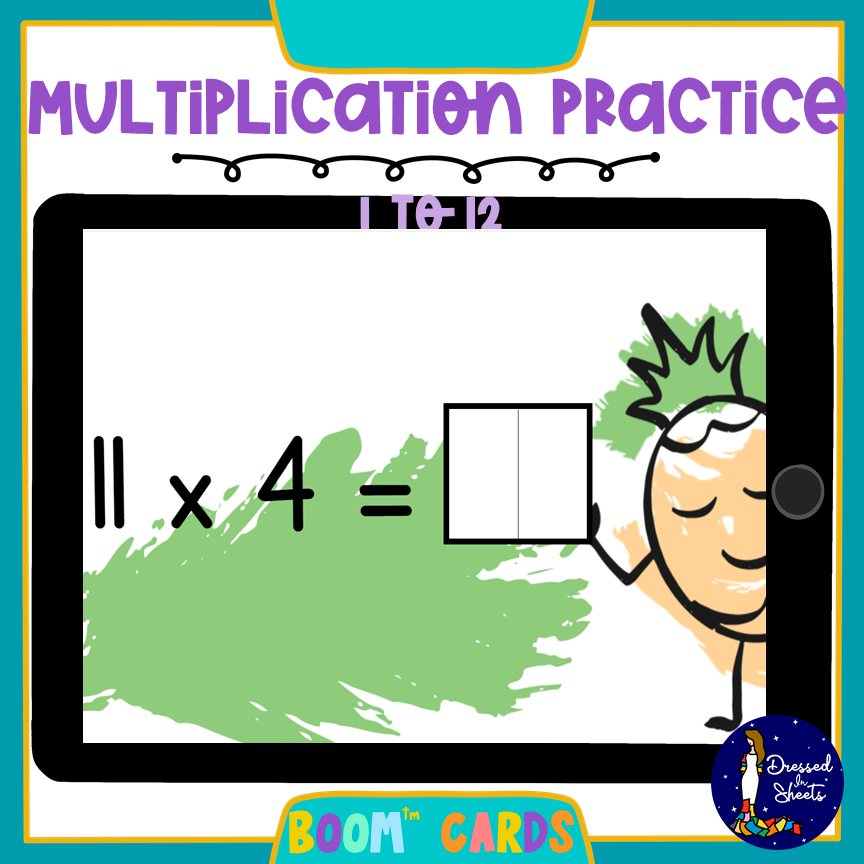 A deck in which students will practice their multiplication skills which includes multiplication problems 1 to 12.