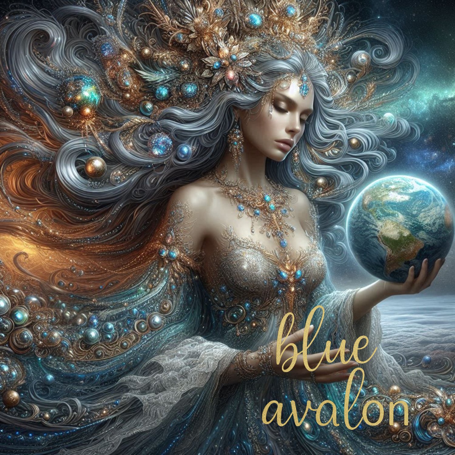 A celestial Goddess floats in the vastness of space, her swirling hair and flowing robes infused with muted tones of gold, silver-grey, blue and green. Planet Earth is being held gently in her hand as she watches over it with quiet power, grace and love. This ethereal artwork blends beauty, strength and cosmic wonder - perfect for lovers of fantasy, spiritual themes or galactic art.