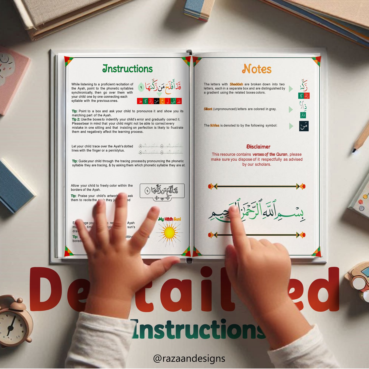 🔆Make Quran memorization a breeze for your child with our Free interactive ebook! Through tracing, coloring, and playful repetition, your little one will master Surah Shams while having fun.Â