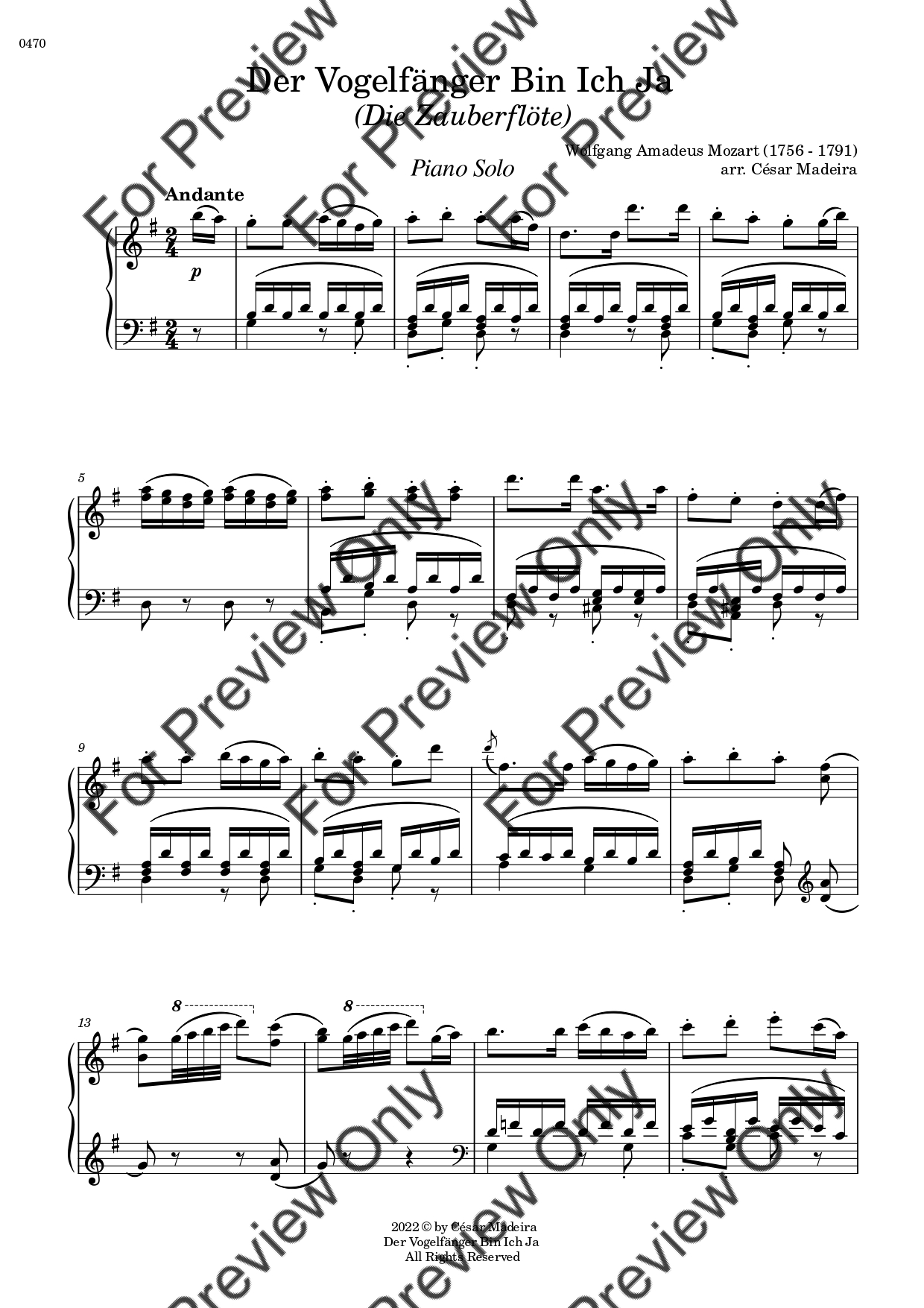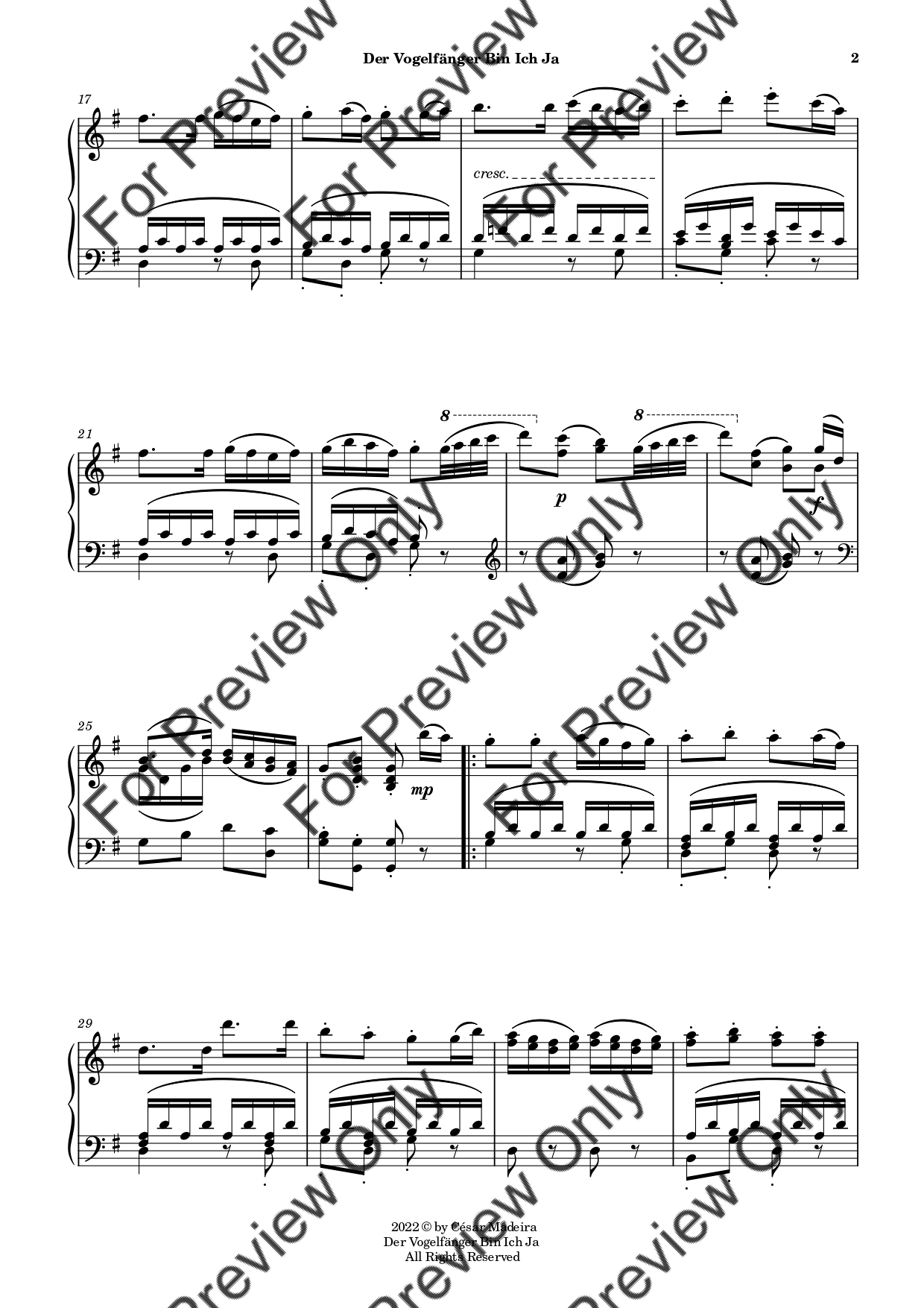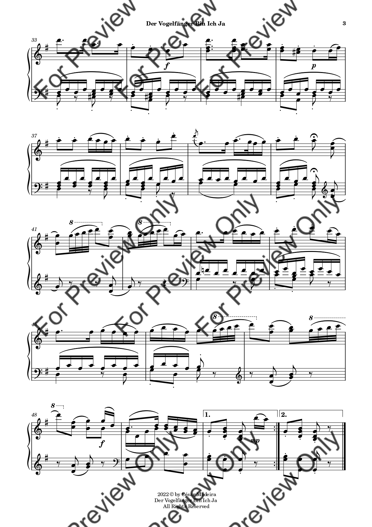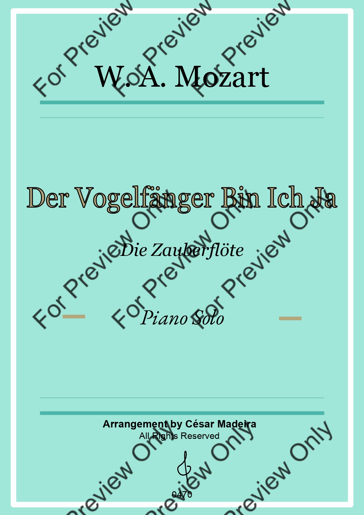 Der Vogelfänger Bin Ich Ja from Die Zauberflote (The Magic Flute) by Wolfgang Amadeus Mozart. Arrangement for Piano Solo. With Full Score. Have fun!