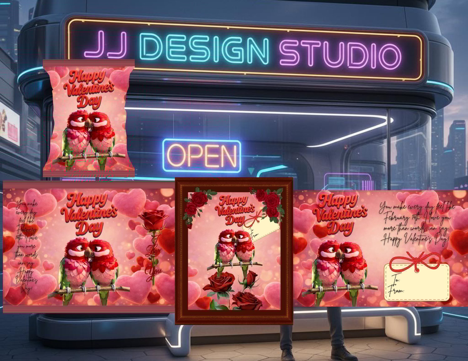 Lovebirds Valentine Trio, Treat Bag, 2 V-Day Cards