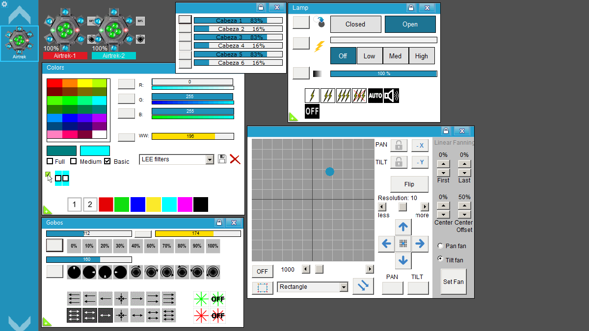 • Control individual de Tilt de cada una de las 6 Cabezas.