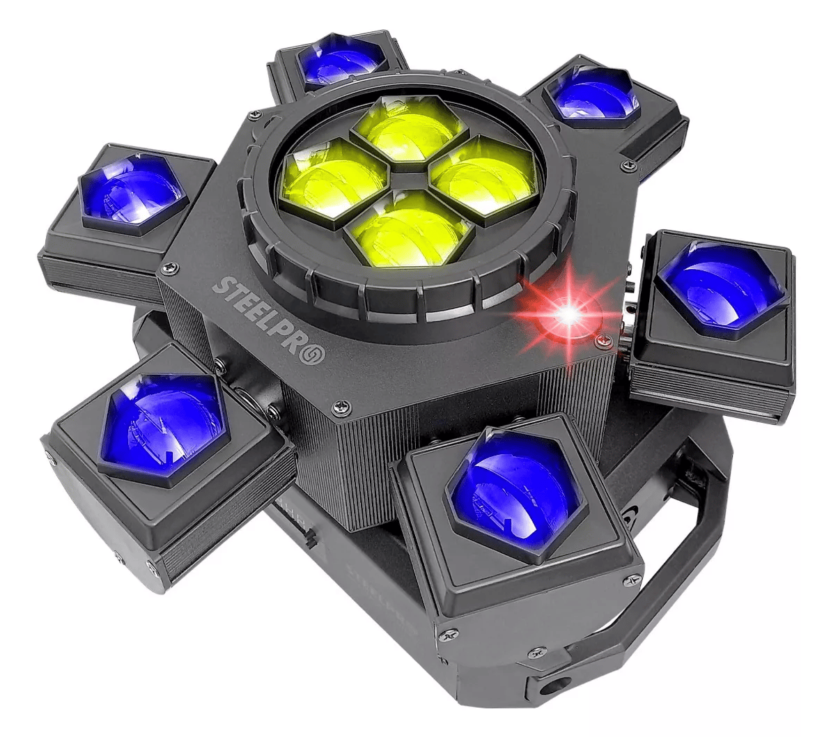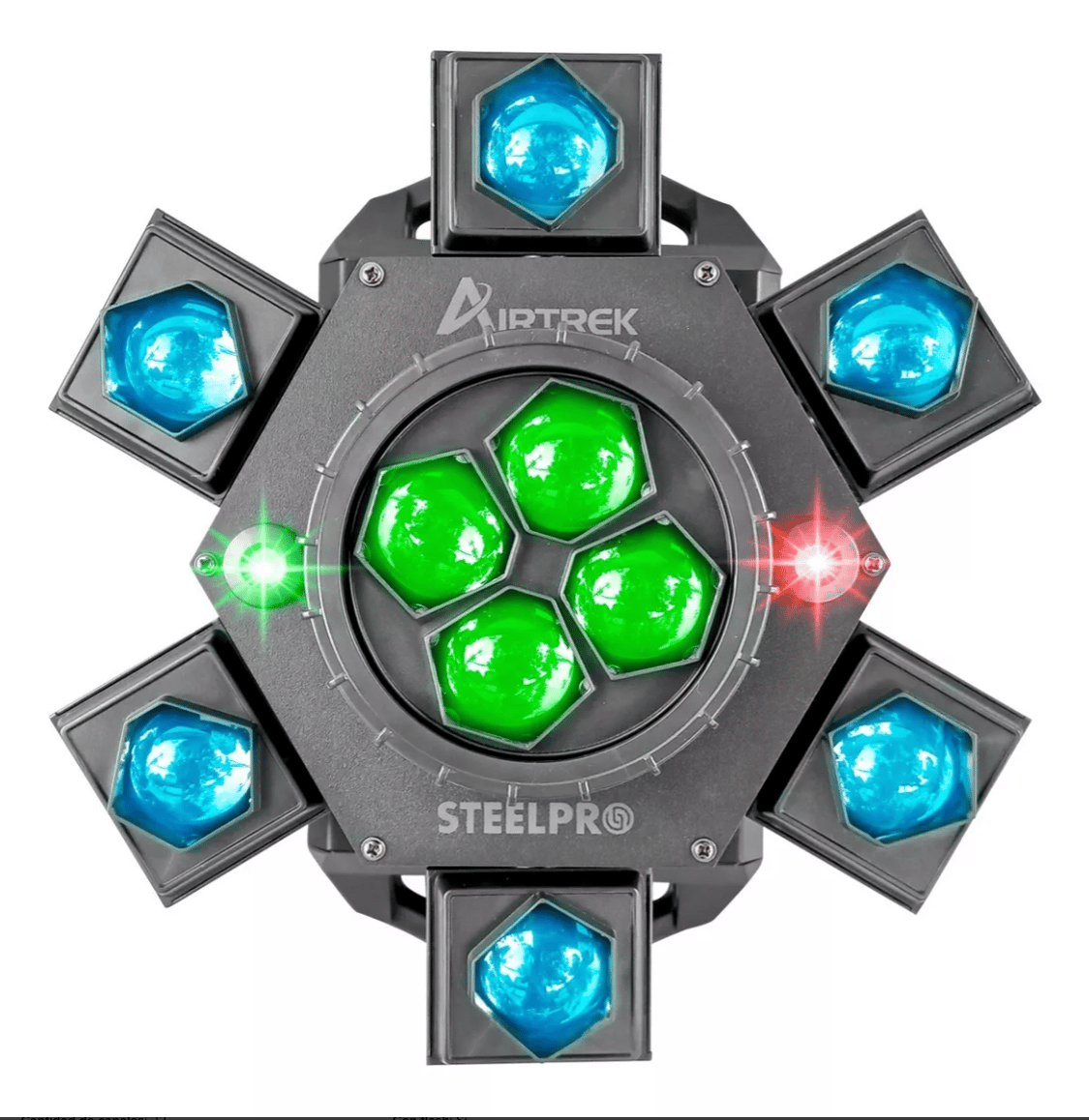 • Mezcla de colores RGBW independientes para el efecto Central y las Cabezas.