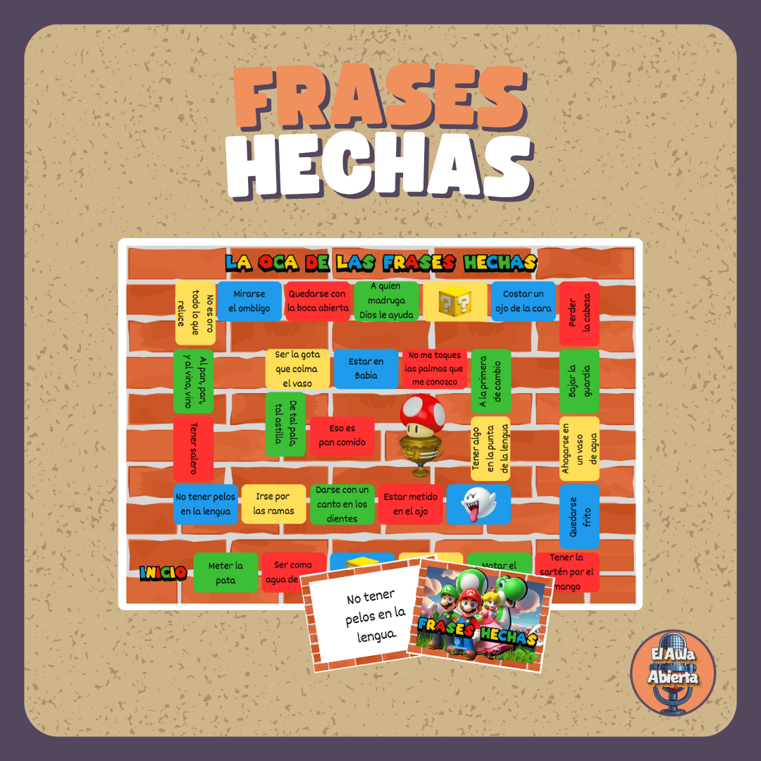 El material consta de 27 tarjetas (+ un tablero) en las que hay escritas una frase hecha.