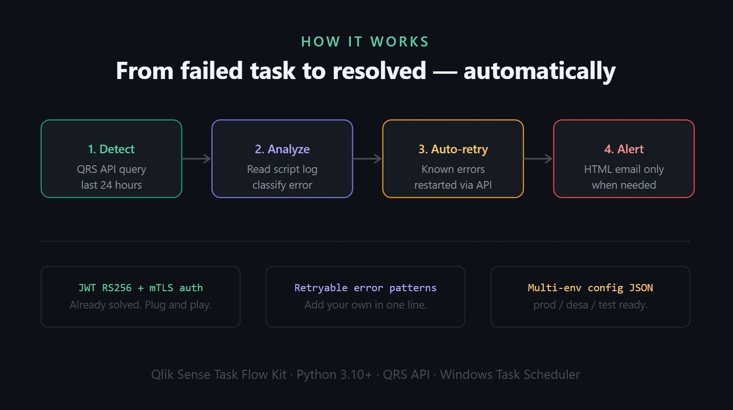 The Qlik Sense Task Flow Kit solves this with a production-ready Python