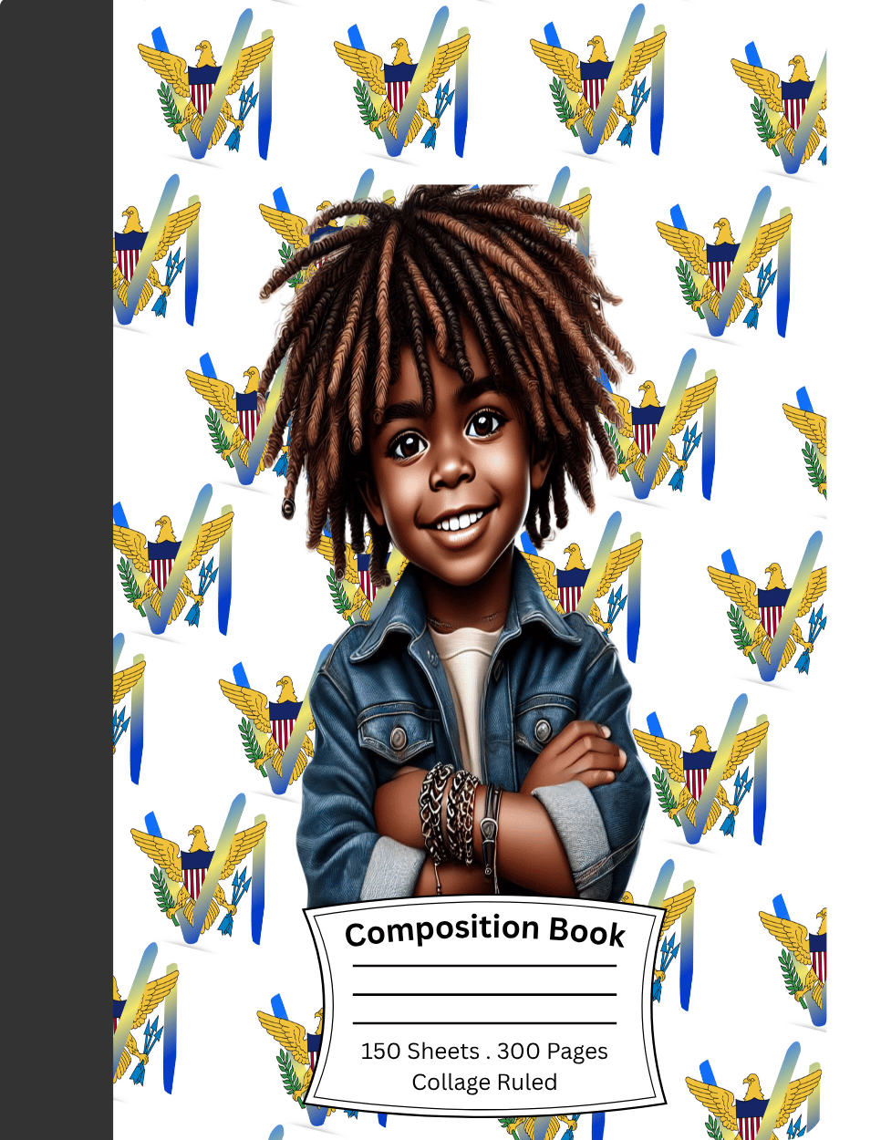 Composition Notebook: African American Boy Locs/VI Interlocked (Front ONLY)