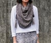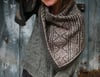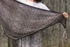 This shawl is designed in one size, but with options to create an inverted trapezium shape or a triangular shape.