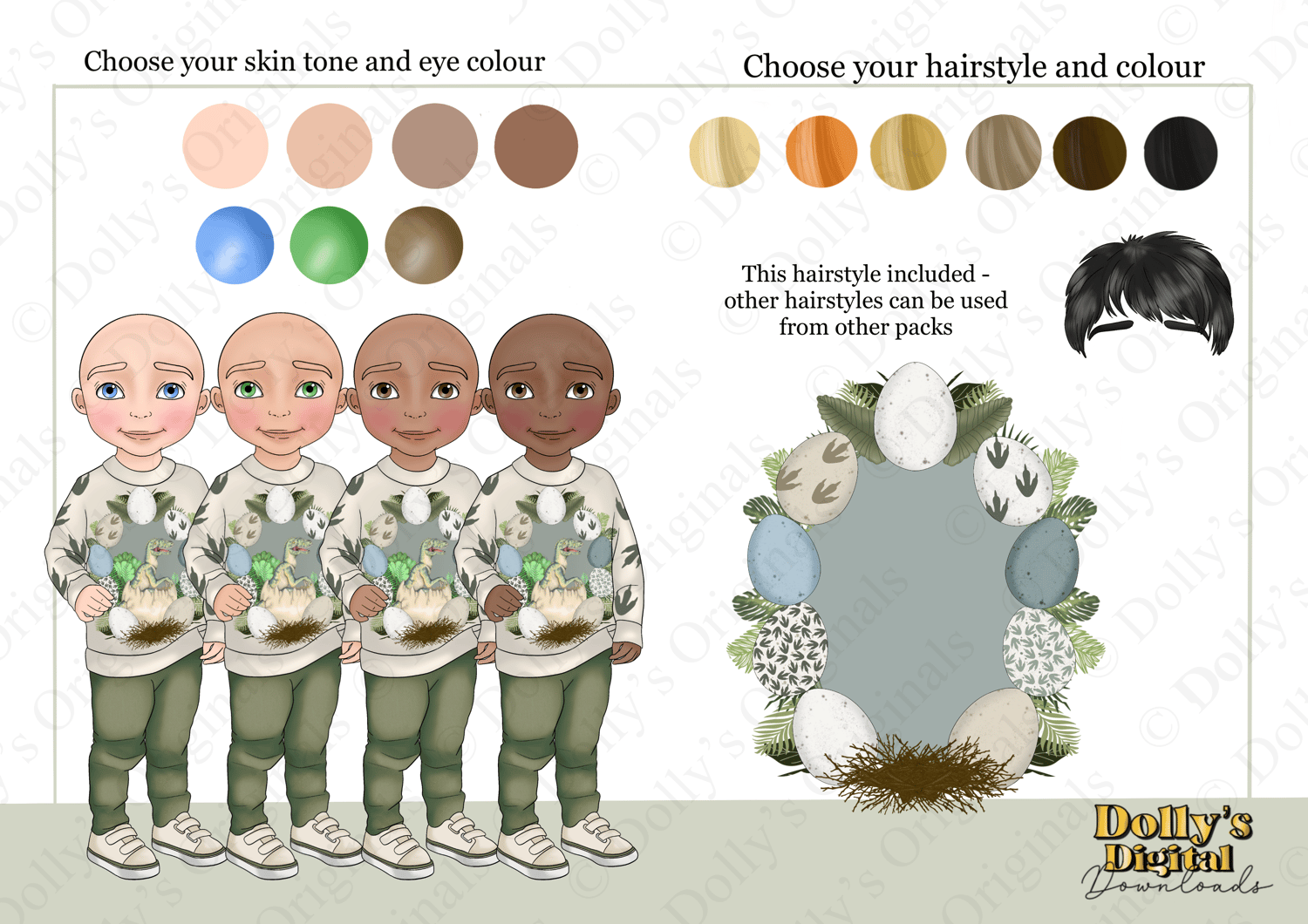 1 Hairstyle included, hairstyles from other packs can also be used.