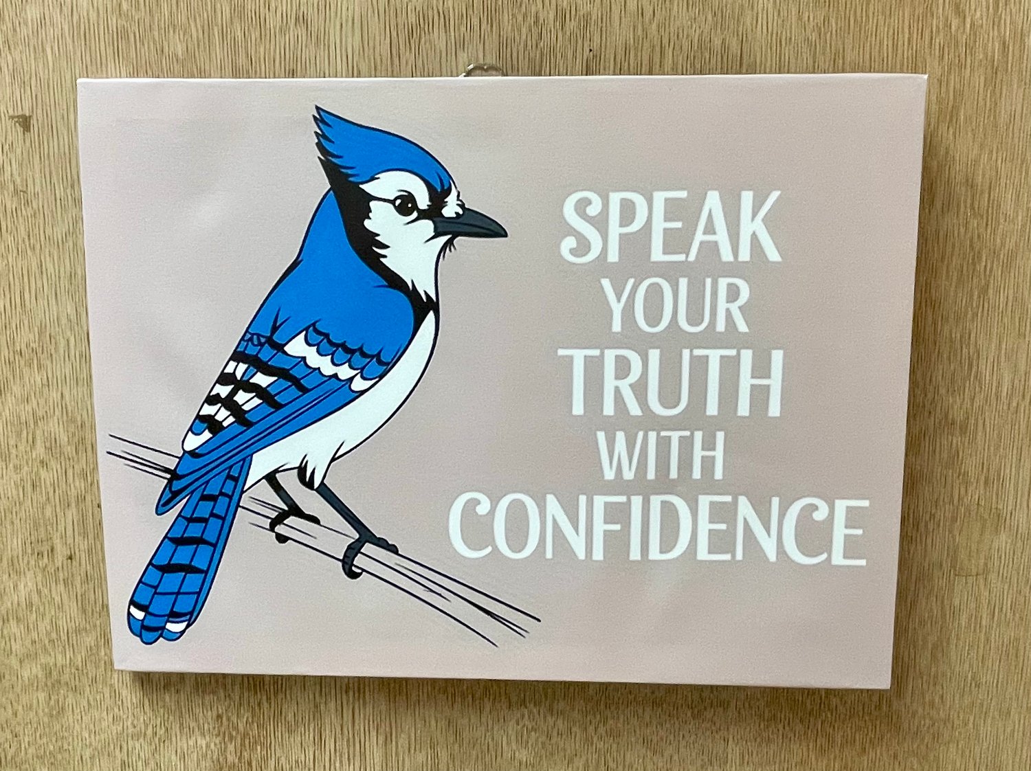 Bring bold inspiration into any space with this vibrant canvas featuring a striking Blue Jay with bright blue and white feathers. The uplifting quote encourages confidence and self-expression, making it perfect for classrooms, offices, hallways, or home décor.