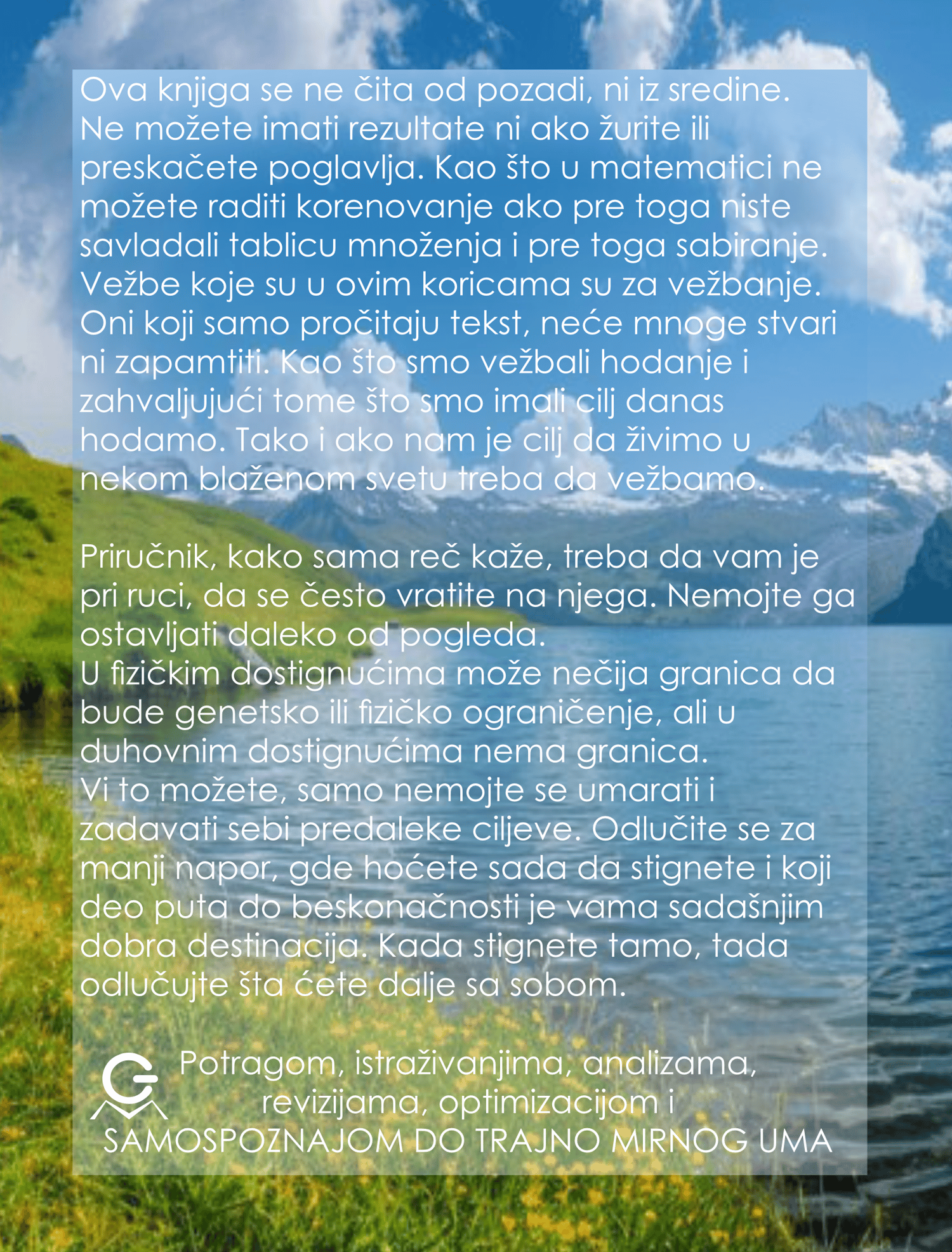 Cilj ovih vežbi je da vi sami za sebe donesete zaključke i dođete do svojih odgovora.