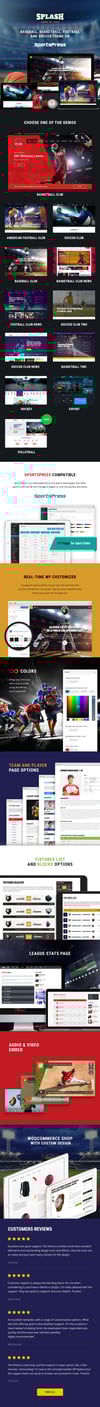 Built with support for the WPBakery Page Builder plugin, Splash is exceptionally agile, with both back and front-end editing. With a responsive layout built on Bootstrap and additional compatibility with the WordPress Customizer, Splash is quick and easy to customize so you can design a sports website that reflects the spirit, personality, and vigor of your team or league.