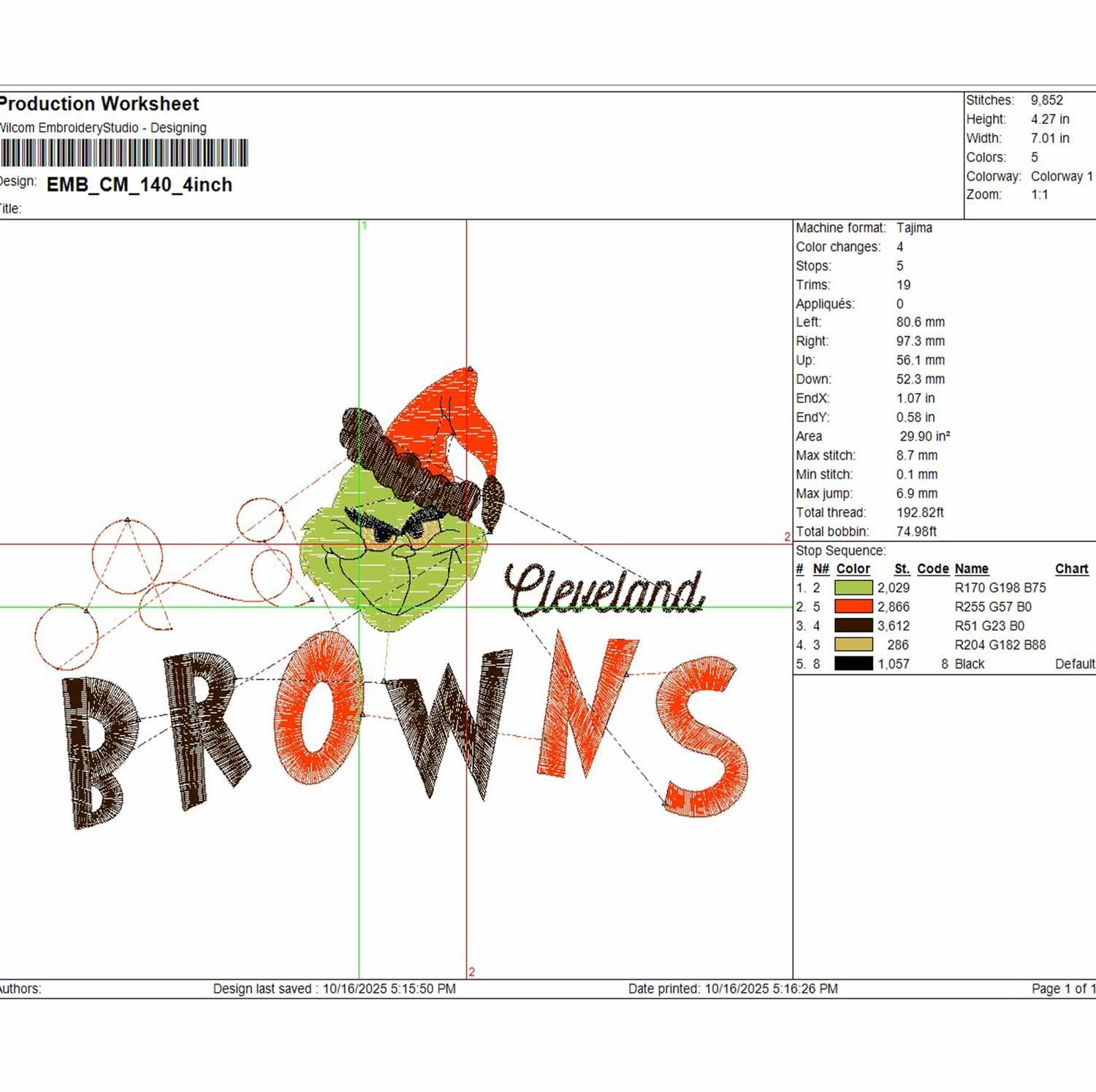 #ChristmasGrinch #ClevelandBrowns #NFLEmbroidery #GrinchEmbroidery #BrownsLogo #MerryChristmas #MachineEmbroidery #DigitalDownload #EmbroideryDesigns #FootballEmbroidery