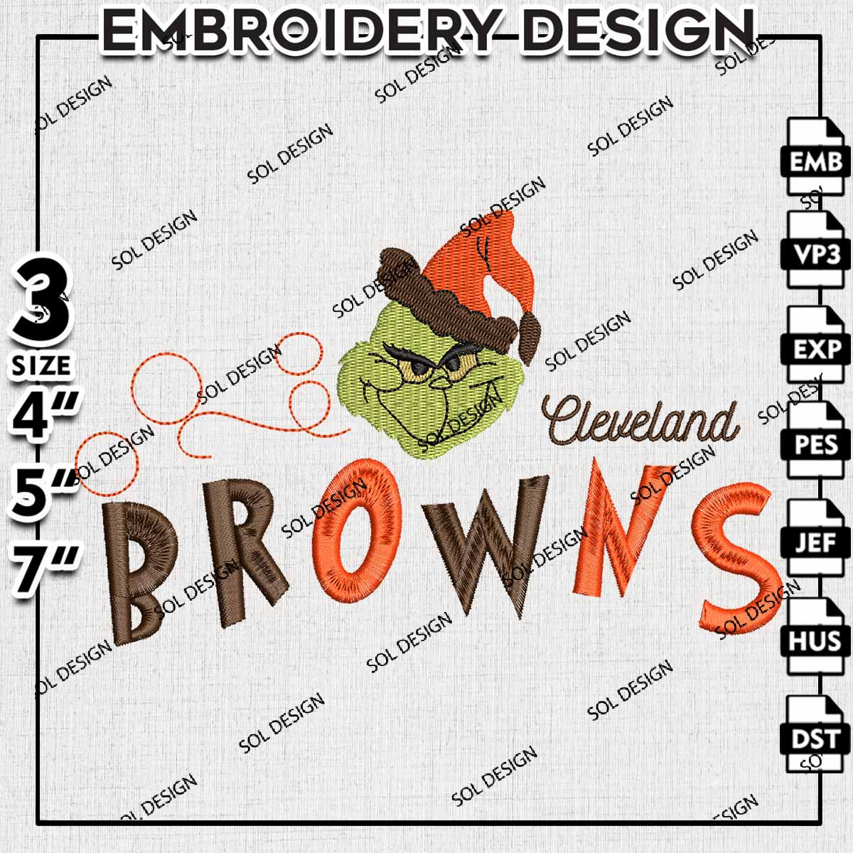 Christmas Grinch Face x Cleveland Browns NFL Team Embroidery Designs, Grinch Embroidery Files, NFL Browns Football Team Logo Embroidery, Merry Christmas Machine Embroidery Design, Digital Download