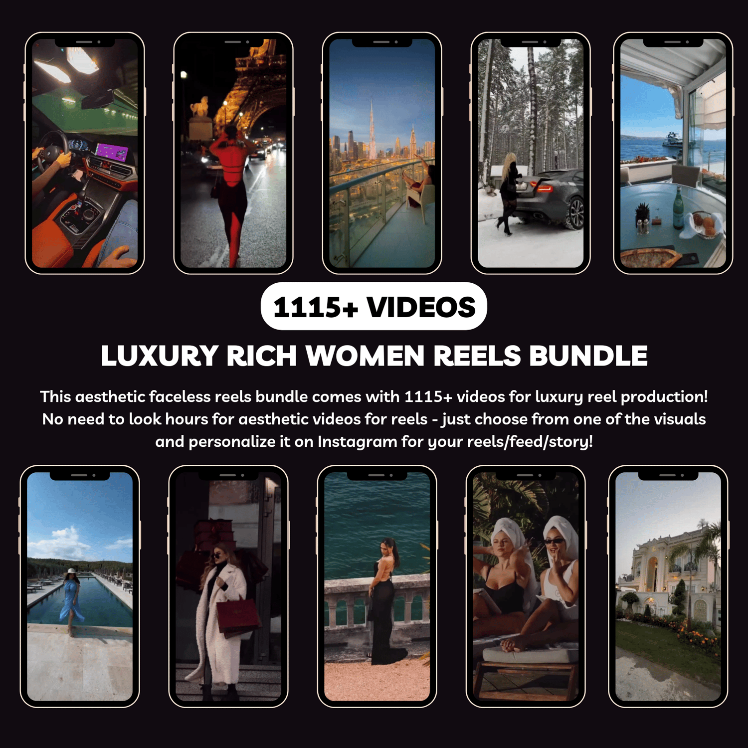 1115+ Rich Luxury Women Reels Luxury Reels | Luxury rich women reels for Instagram TikTok YouTube Facebook | Luxe Reel Bundle