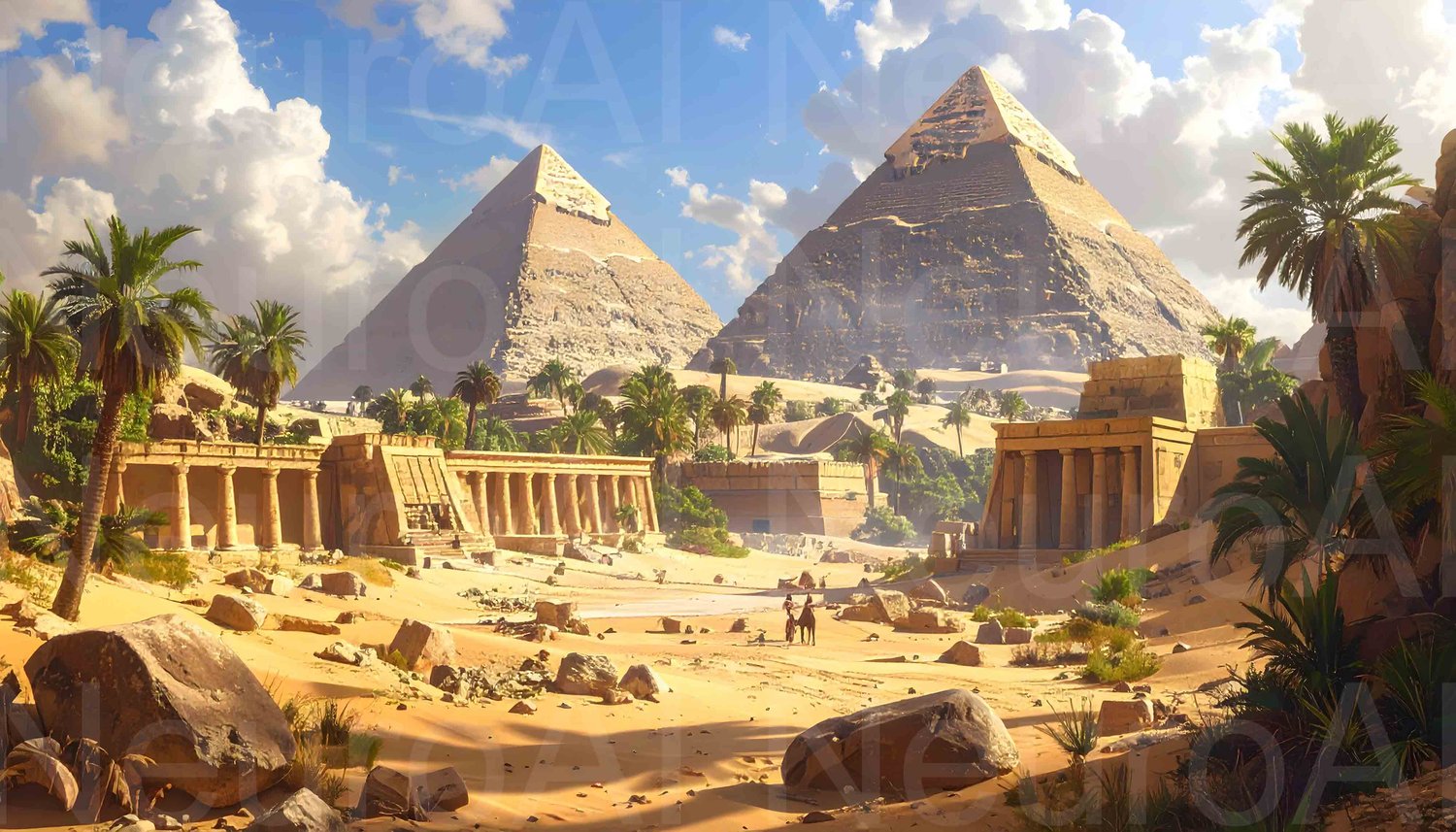 Travelers exploring Egyptian pyramids on horseback