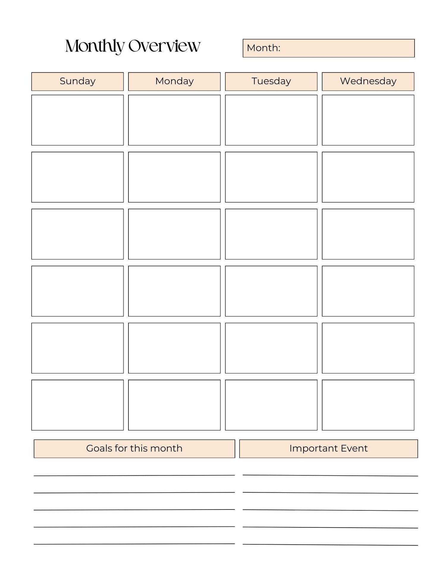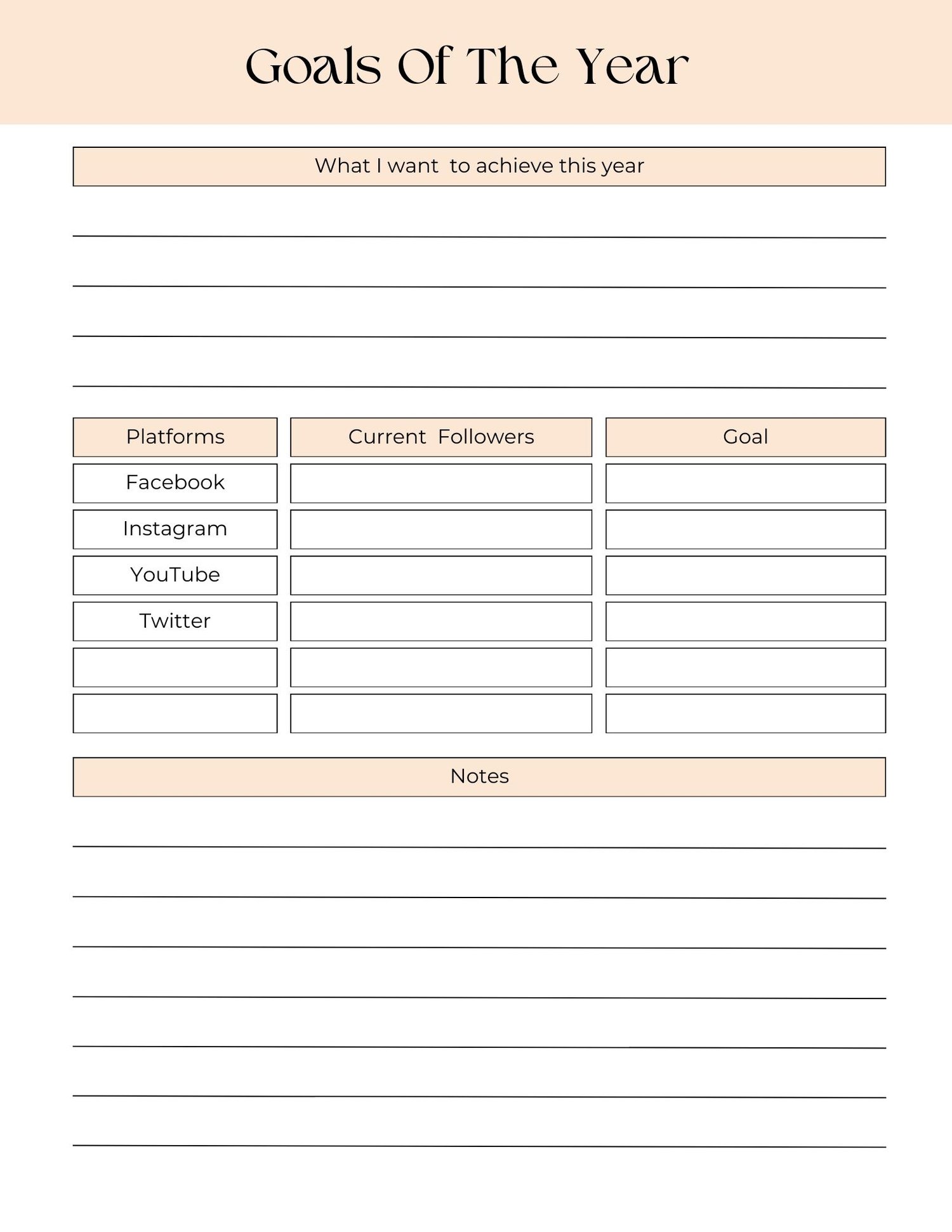 - Weekly to-do lists, content planning grids, and inspiration sections