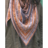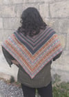 This traditionally shaped triangular shawl has a very striking visual Doppler effect to it with repeating garter stripes, in alternating contrast shades, variously distanced apart from each other. This make it both intuitive and relaxing to knit for the larger part of the shawl, where you could finish it if you feel it is large enough, followed by some straightforward lace edging to frame the whole effect. I love very bold geometric shawls that are both very simple and non-fussy to knit up as well as a statement to wear, and you can really change the look of this shawl in its style by playing with colour pairings, such as high or low contrast combinations. I used a slightly plumper than usual fingering weight yarn in a wool / cashmere blend for that soft floofy drape in delicate neutral shades for a gentle palette, but any soft wool based / blend yarn of your choice should work fine. You can choose whichever yarn weight you prefer, just remember different gauge can change the required yarn amounts and finished measurements.