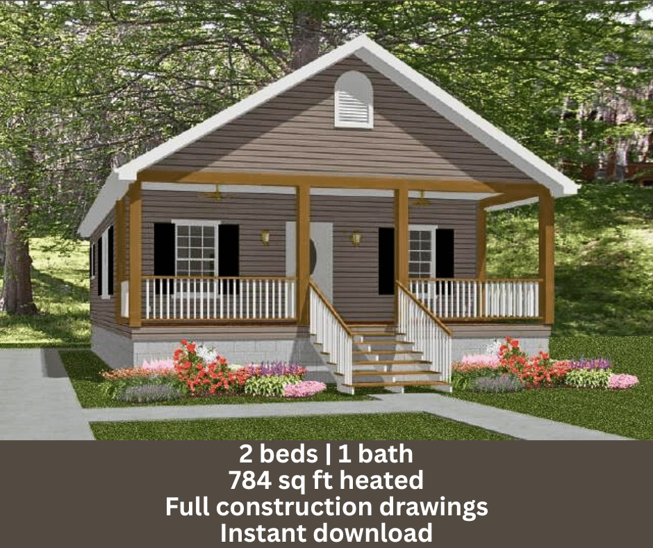 The Laura Small Home Plan – 2 Bed / 1 Bath Cottage-Style House | 784 sq ft Living | Instant PDF Blueprint Download
