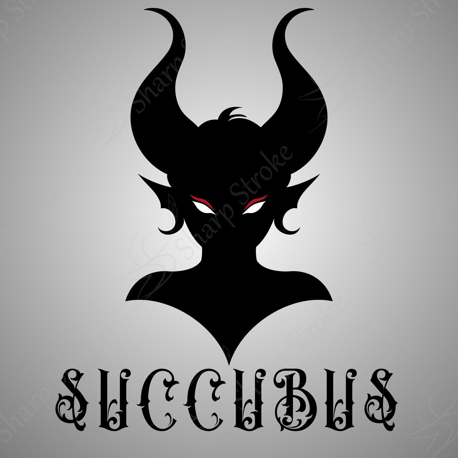 This design features a black silhouette of a demonic woman (succubus) staring in an evil, haunting way — adding an edge of darkness to any project.