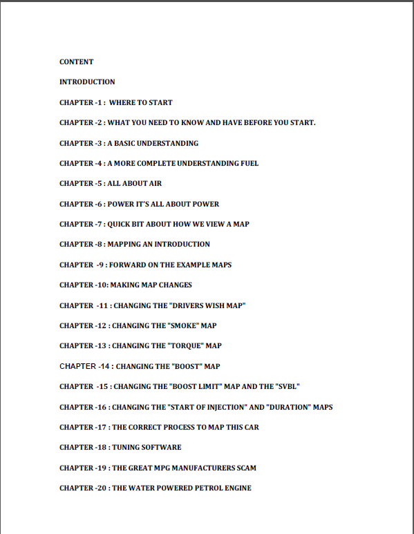 this book to help people that want to get into the business of re-mapping cars, I say cars but it actually is relevant to any form of combustion engine