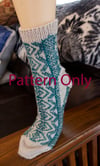Techniques: Stranded Color work, heel flap, gusset, increases, decreases, knitting in the round, Toe up.