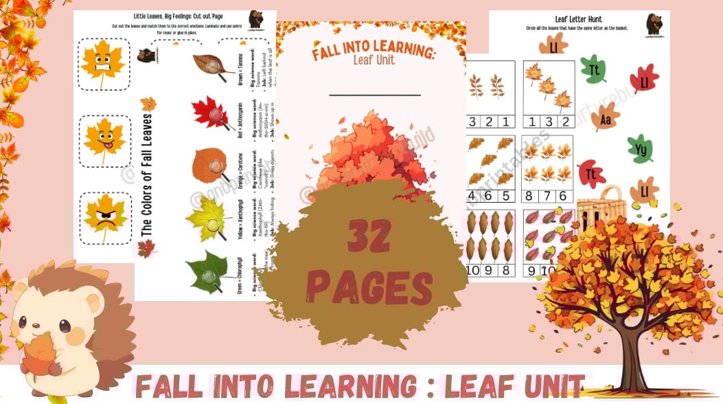 Bring the beauty of autumn into your toddler’s learning with this 32-page Leaf Unit, created to be toddler-friendly, interactive, and fun. Each page is designed in a way little learners can understand and engage with on their own. My 2 year old absolutely loved working through these activities, and I’m excited to share them with you!