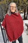 The poncho can be worn buttoned at the shoulder, or with buttons to the front as a cape or with buttons to create a sleeved shug.