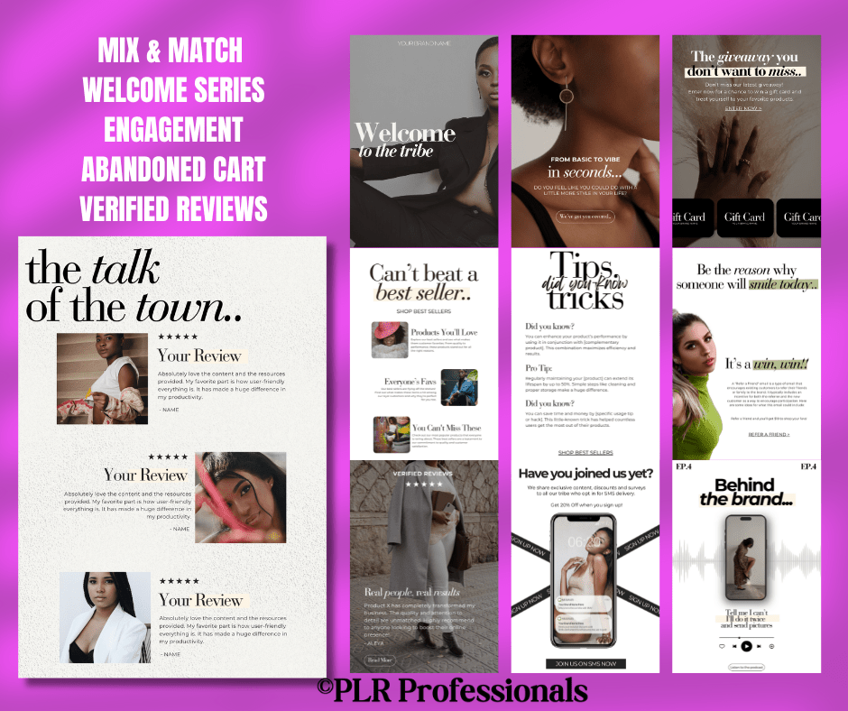 Say goodbye to email marketing overwhelm with the 30 Email Marketing Bundle! This mix-and-match PDF includes editable Canva templates that make crafting professional, high-converting emails a breeze. Designed to save you time while boosting engagement, the bundle also comes with Master Resell Rights (MRR) and Private Label Rights (PLR), so you can profit from it too! Plus, upgrade to add custom mockups that elevate your designs even further.