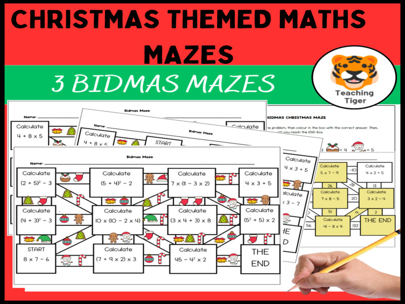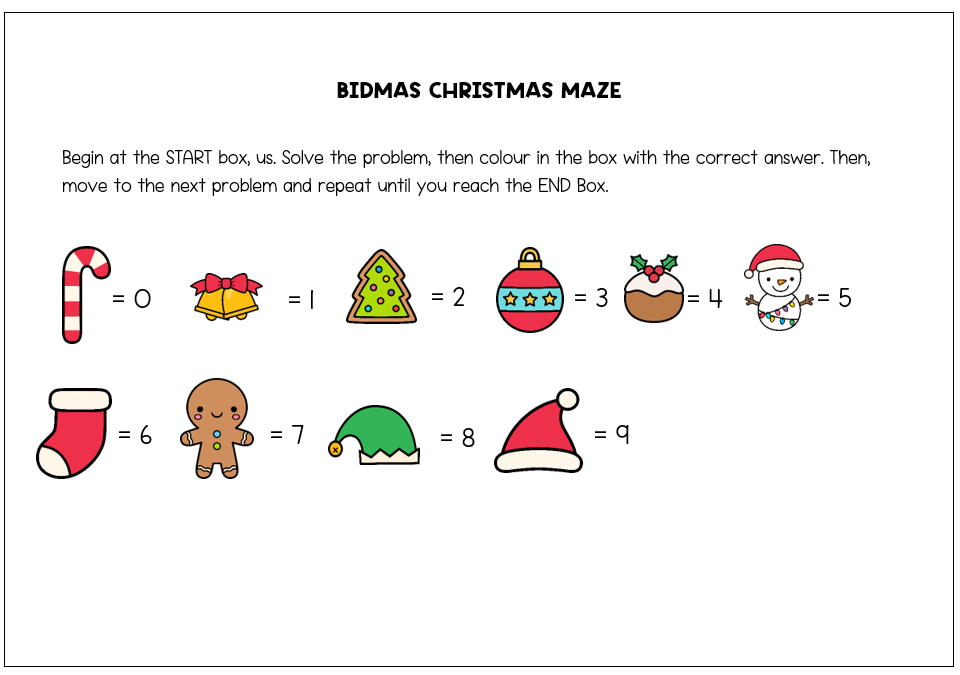 These Christmas Themed maze worksheets are great for homework, math centers, substitute plans or extra practice of bidmas. There are 3 different levels of mazes to choose from, one with calculations, one with calculations including brackets and the final one, calculations including brackets and powers. They’re super easy to just print and use! A fun way to assess or revise brackets during this Christmas period.