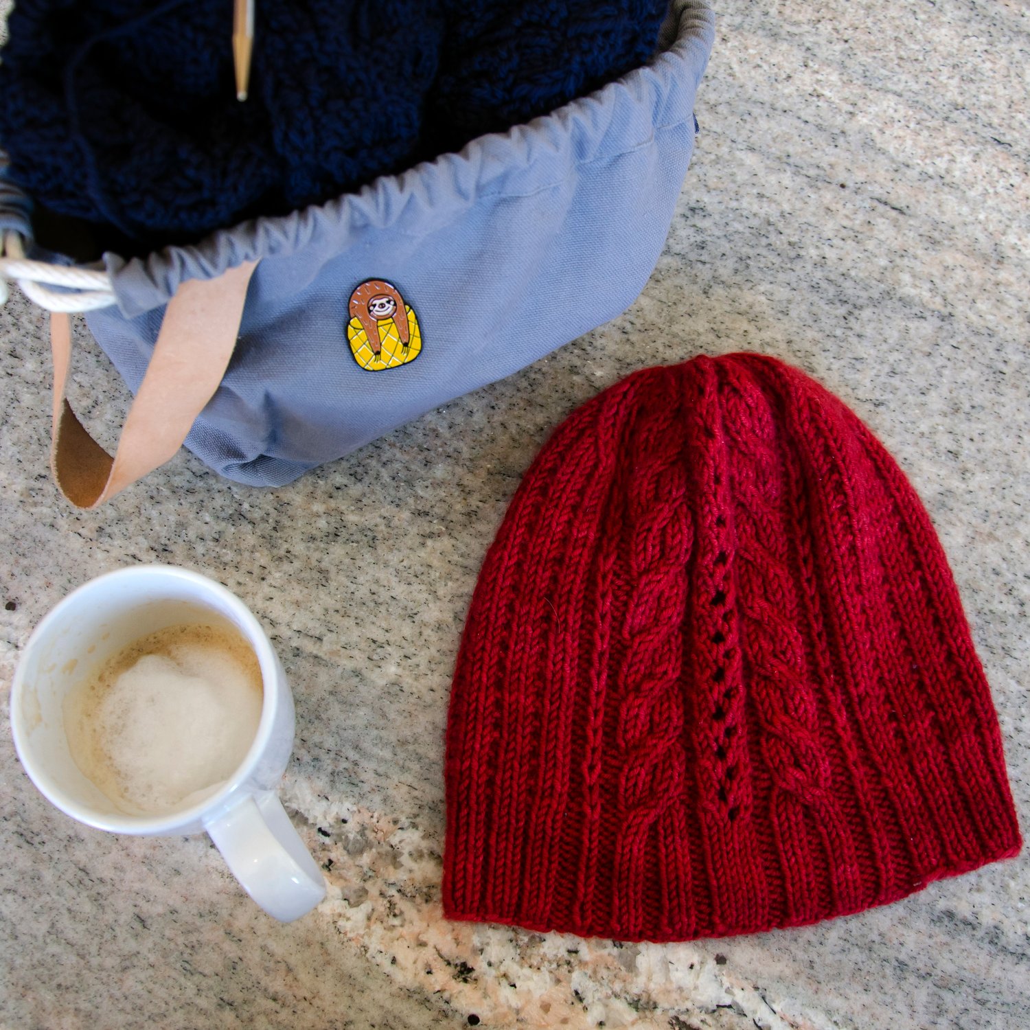 Featuring a panel of cables and lace surrounded by broken rib stitch, the Winter Brew Hat is designed for a slouchy, relaxed fit.
