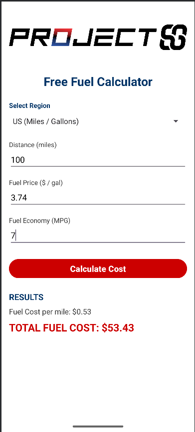 ✅ Calculates total Trip Fuel Cost instantly