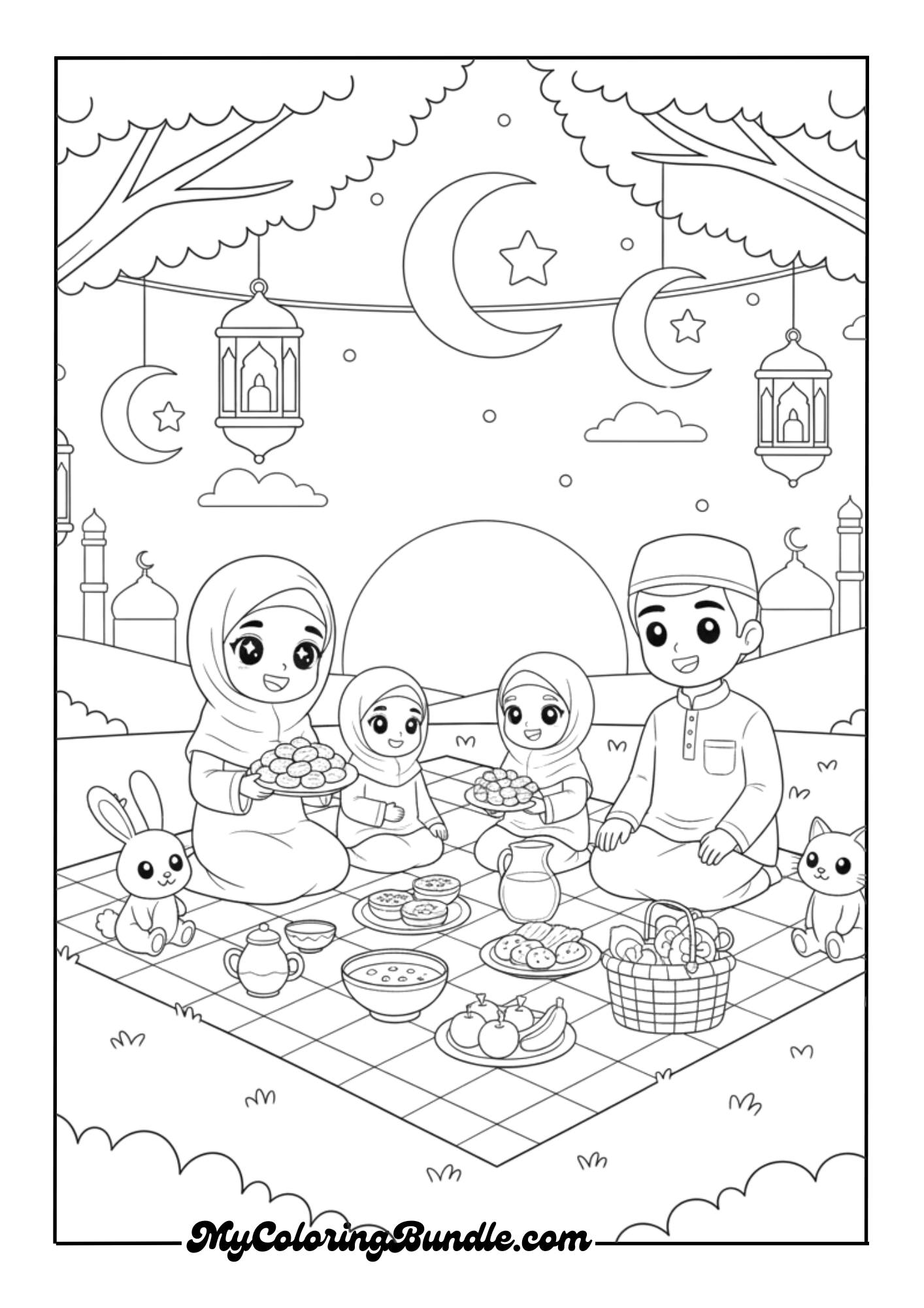 Inside this delightful PDF, kids will enjoy peaceful and joyful Ramadan scenes, including: