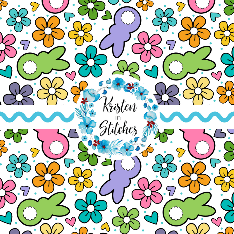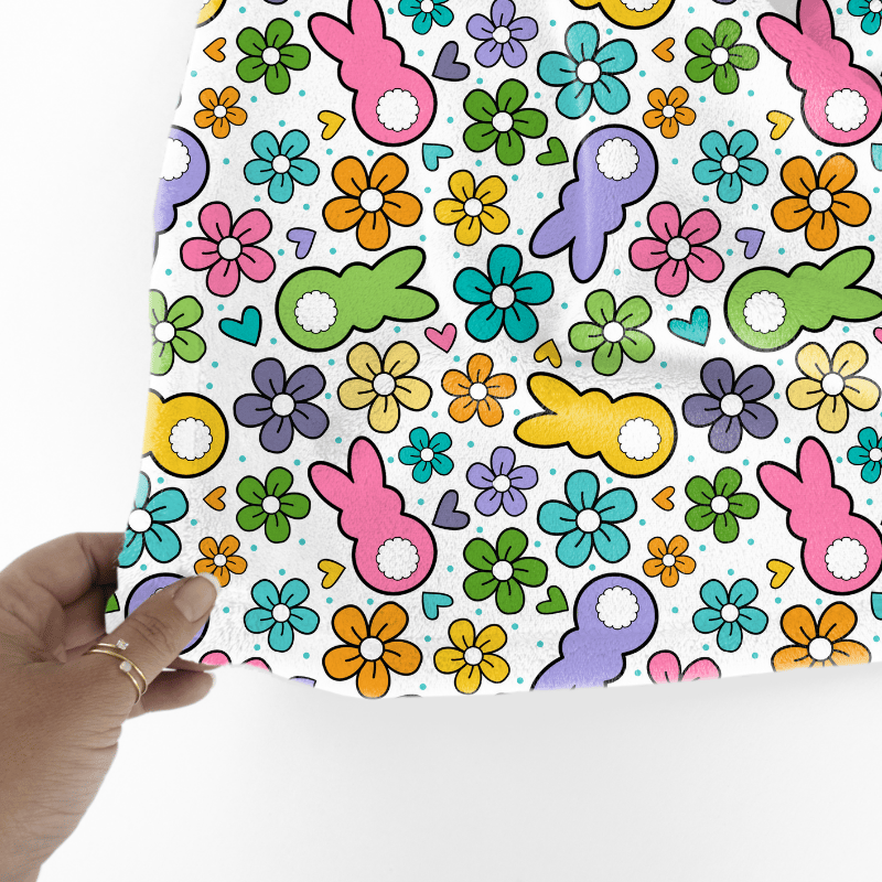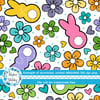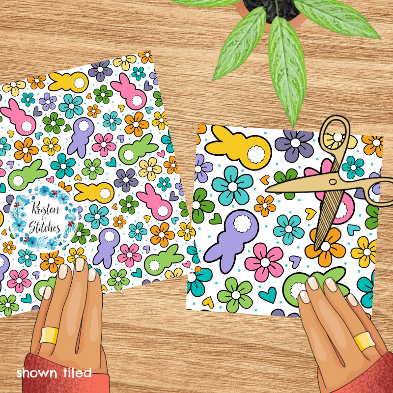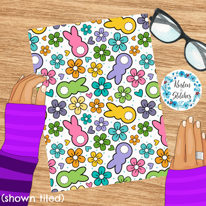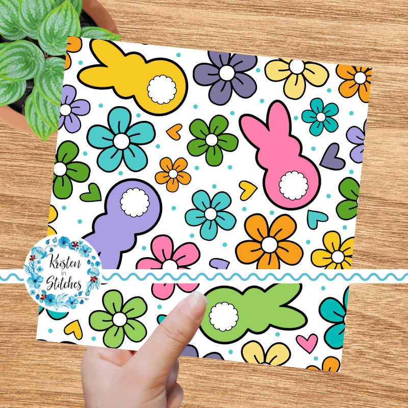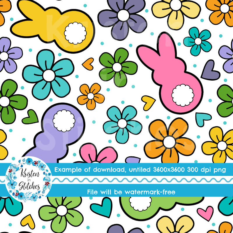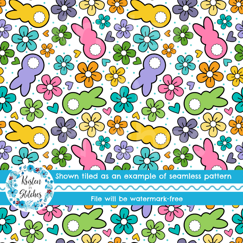 Easter Bunny Fluffy Butts Seamless Pattern, Spring Flowers