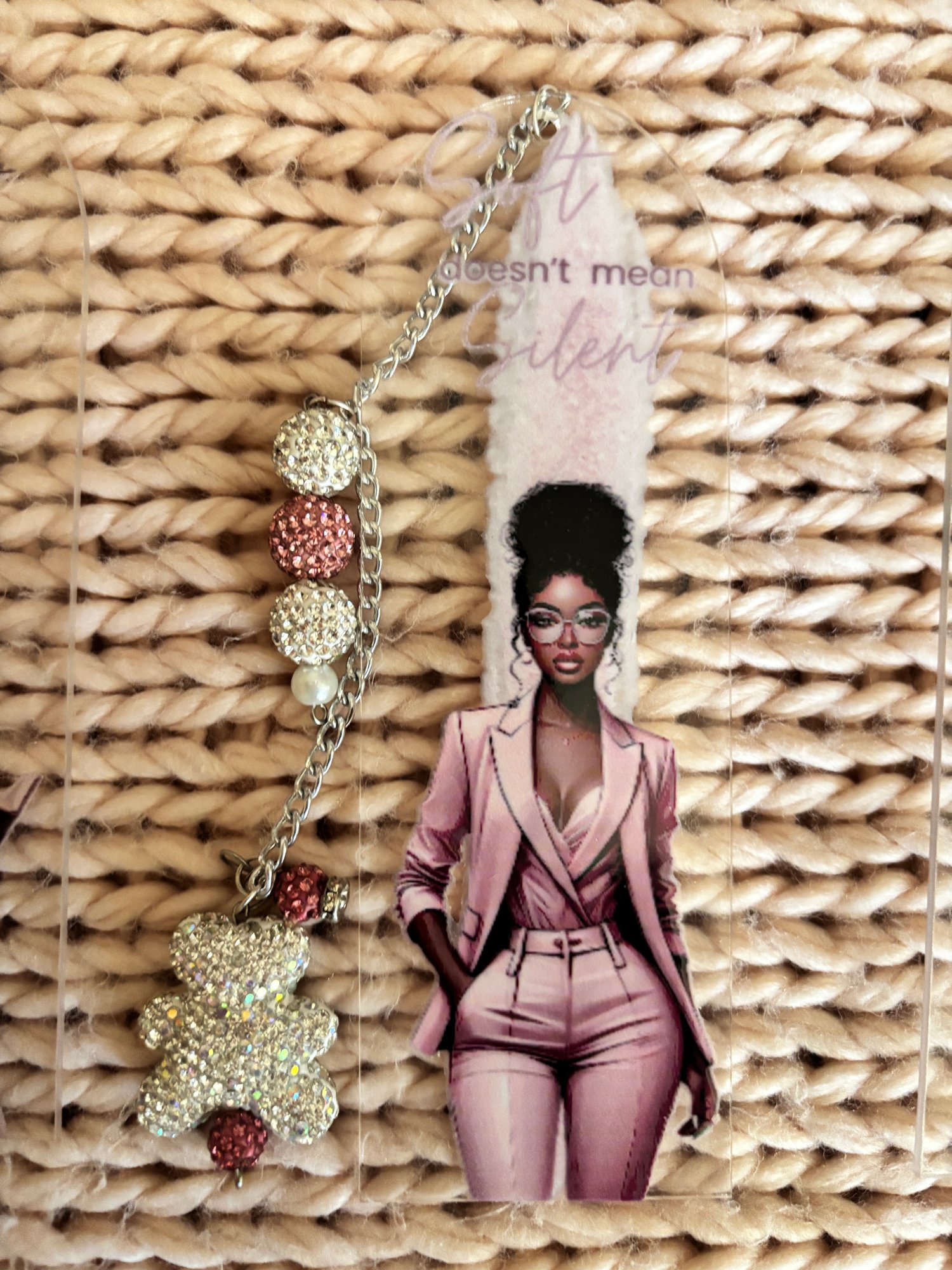 Each acrylic bookmark is printed with original, fashion-inspired art and finished with a hand-assembled silver chain tassel, adorned with luxe charms and sparkling beads. More than just placeholders, these bookmarks are statement pieces — a perfect fusion of style, culture, and self-expression.