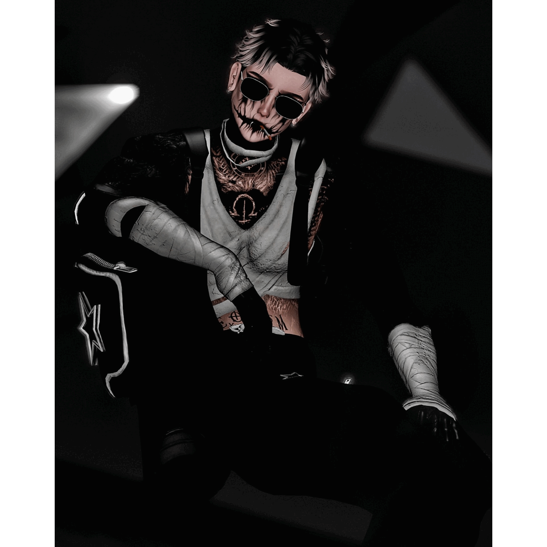Compression shirt: Ruski, Buckled Belt: Ruski, Gun Harness: Ruski, Straight cut Suit Pants: Ruski