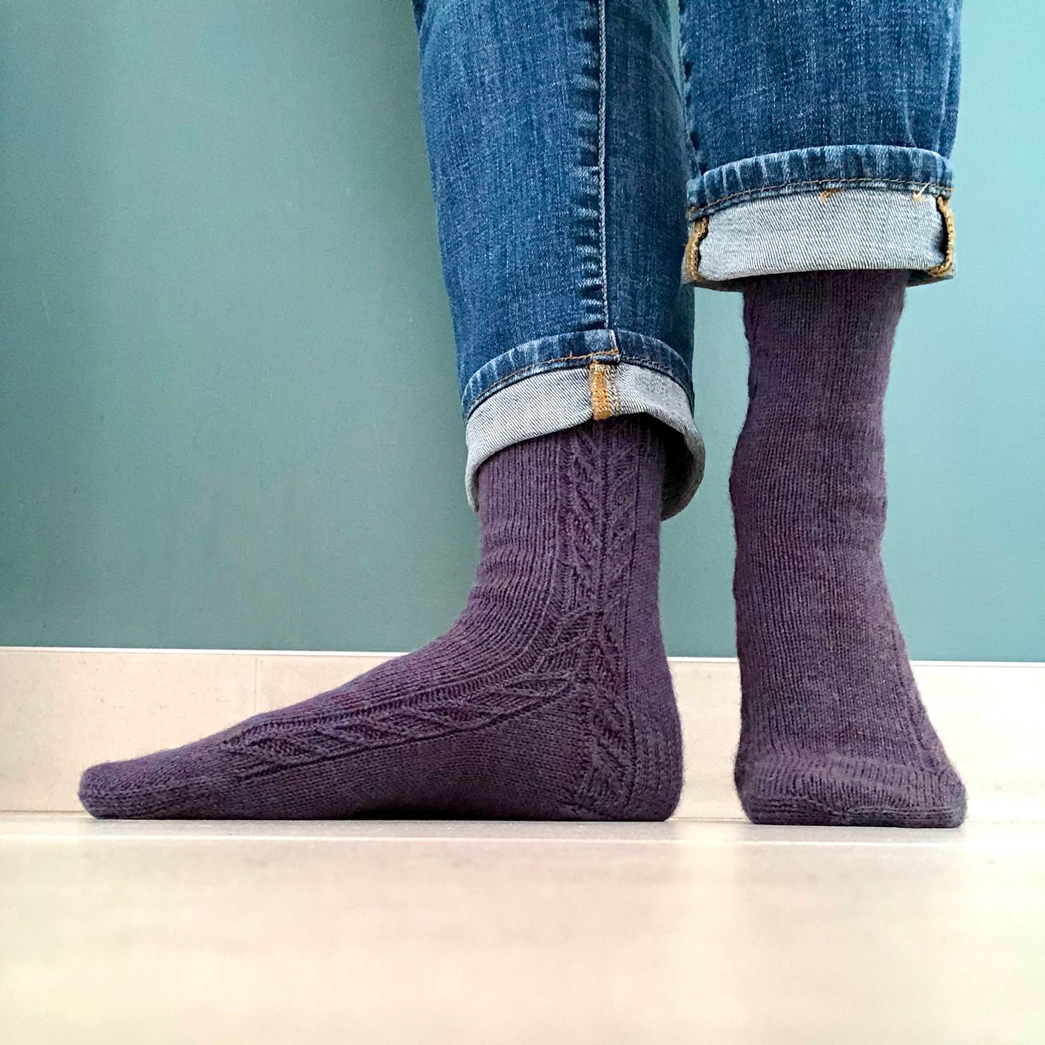Shown in: Knit Picks Stroll Sock (affiliate link)(75% Superwash Merino Wool, 25% Nylon; 231 yards/50g); 2 (2, 2, 3, 3, 3, 4) balls in Forest Heather.
