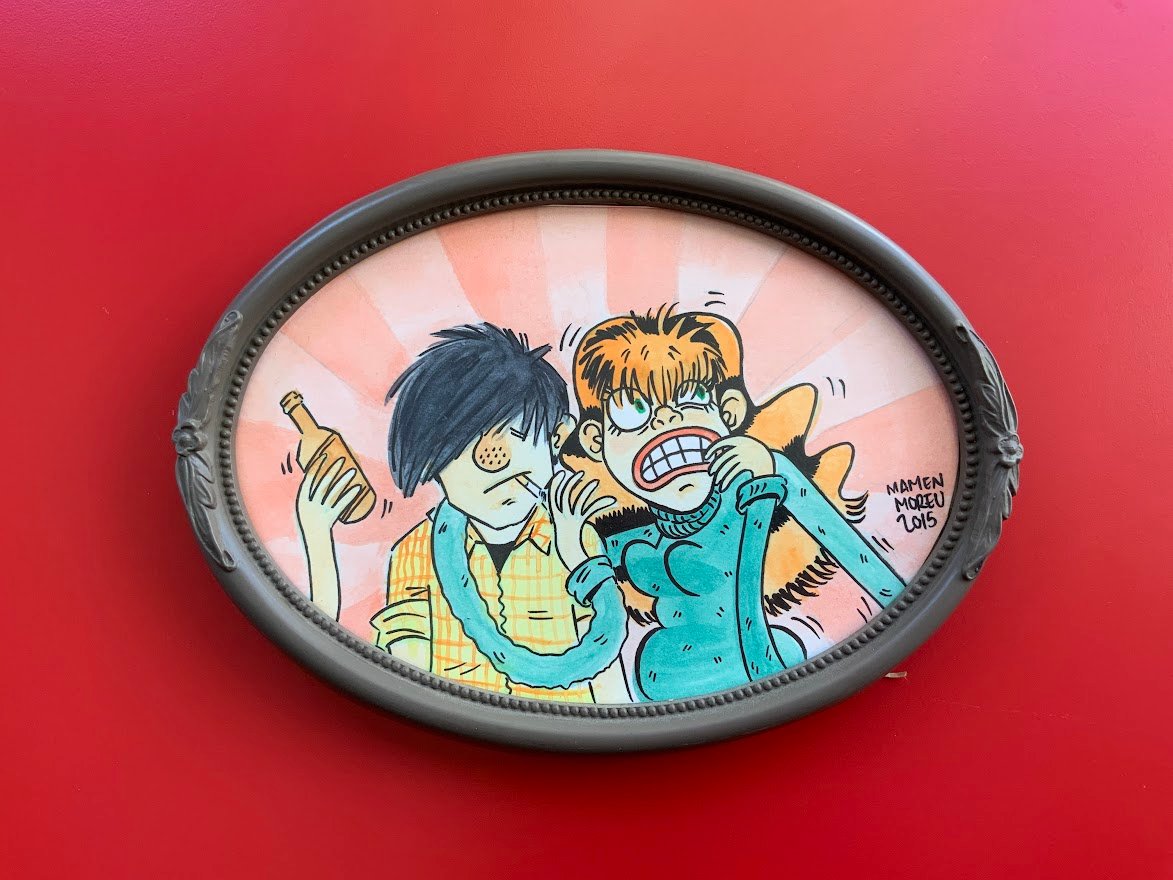 Cuadrito de Buddy y Lisa dibujados en mi estilo. Año 2015.