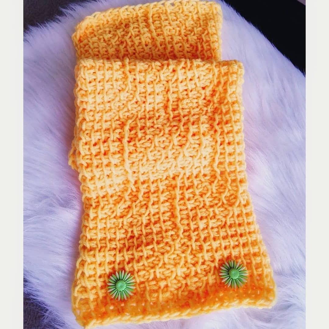 A short and sweet crochet neck warmer/scarf pattern made using Tunisian crochet. The pattern is easily scalable to any size you want. The pattern is written in US terminology.