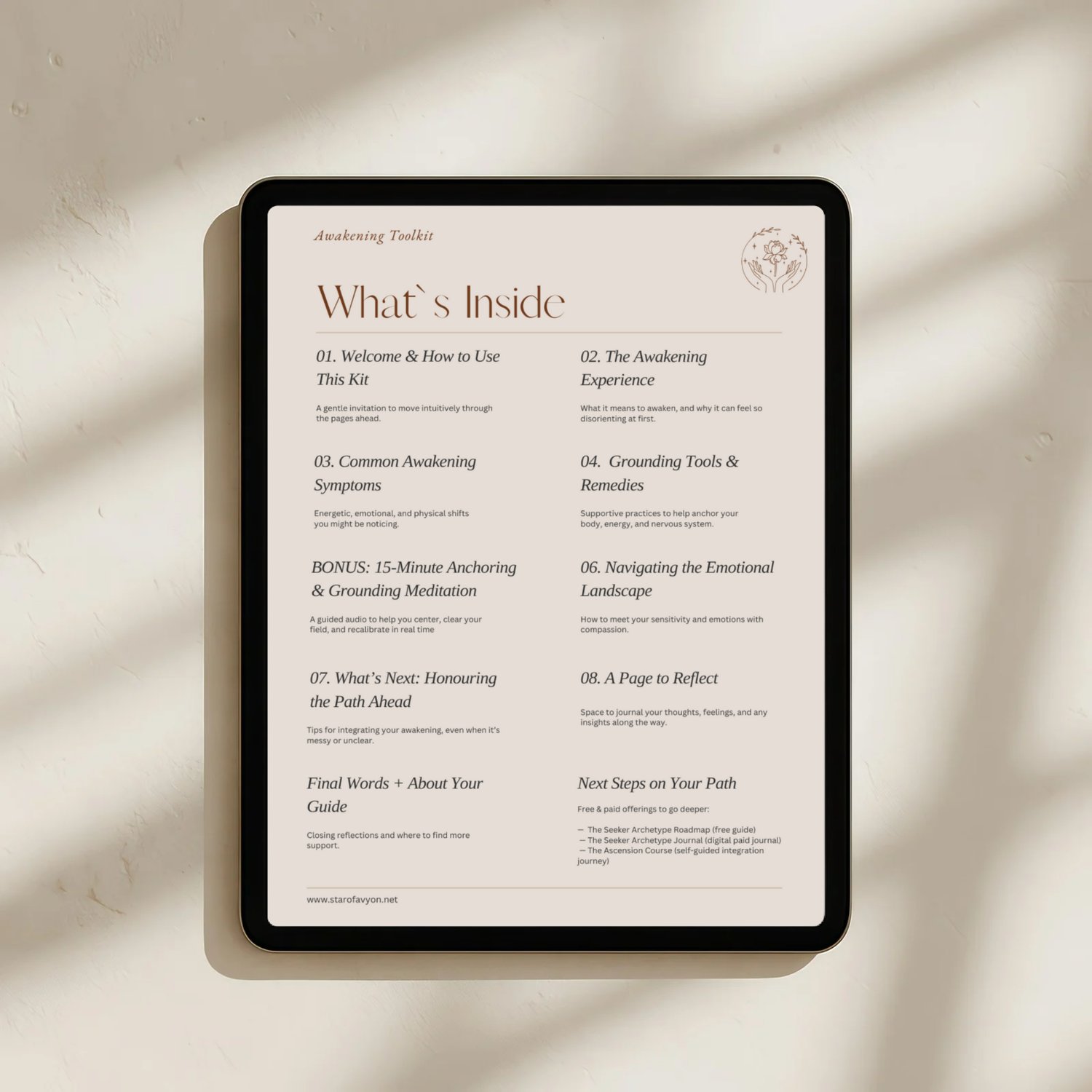 If you’re navigating the waves of awakening, this toolkit offers gentle guidance, grounded support, and practices you can lean on again and again.